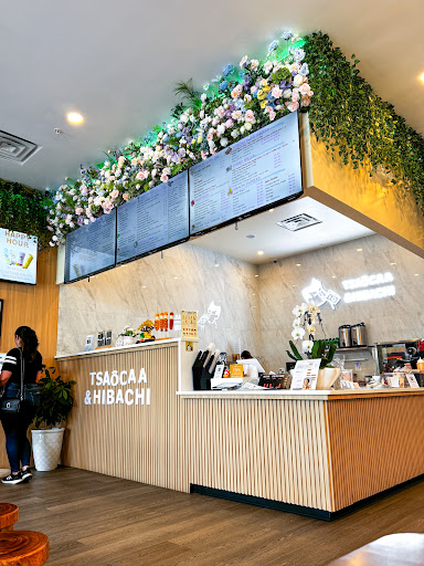 Food and drinks are good! And atmosphere is light and sweet. Decoration is beautiful. Got their Bucket Jasmine Milk Tea (50% sweet; recommend) and was happy it wasn’t too milky. Was told that they didn’t have the herb jelly and asked to substitute it and requested for crystal taro bubbles. Didn’t get the taro crystal bubbles and just got the nata jelly and tapioca bubbles. Didn’t mind it at all but they did have a person fluent in English and didn’t utilize her to help with communication with customers. Because when asking about replacement topping for the herbal jelly every time I asked about a topping the person assumed I wanted it when I did not want it. Also got the brown sugar milk tea with bubbles but the bubbles had a rubber alcohol taste to it when first tried. Very disappointing in it but understand it’s grand opening and they’re getting everything sorted out, the time I went was around 7pm so it wasn’t busy at all. Takoyaki and popcorn chicken is good also recommend. Got the fried chicken but was disappointed in how they sauced the chicken. It wasn’t tossed in it but more like drizzled with a spoon/sauce bag. Super crunchy but would be better tossed in their sauce. Biggest disappointment was the hibachi, do not upgrade the fried rice as it’s just soy sauce rice with eggs in it. Everything was overcooked when the option for the steak was medium and the plate was stapled shut with leakage. Would recommend visiting and giving them a try. Just think I caught them at...