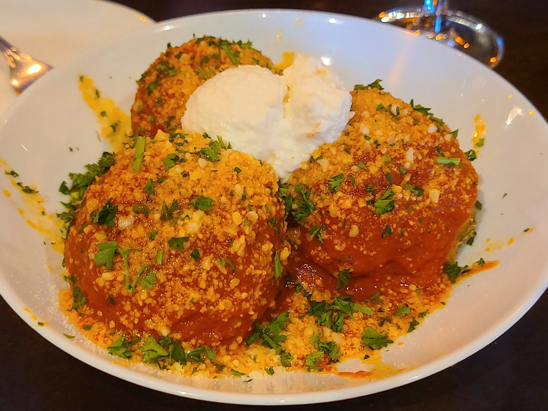 TLDR: ORDER DESSERT! or your missing brain cells 3.6/5 overall (I picked 4 because of the desert, I find it rare that a place has multiple solid dessert options) This is an in-depth review of my experience at Two Meatballs in Cape Coral. I'm not from the area, but overall, I would come back. My rating is based on my expectations of a restaurant in a similar caliber, so a score of 1 does not mean McDonald's quality, but rather the lowest score for a restaurant that would offer comparable service and food. The scale is 1-5, with 5 meaning I was thoroughly impressed. Atmosphere: 5/5 The restaurant is beautifully decorated, and whoever did the decor did an amazing job. Everywhere you look, there is something interesting and intricate to admire. Service: 4.5/5 The service was great. Main Dish (I ordered a classic italian seafood dish): Presentation: 5/5 The dish was plated very nicely. Quality: 4/5 They are not using cheap ingredients, which is appreciated. Taste: 2.5/5 While the food was good, I wasn't left wowed. If i were to come back i will try something different Appetizers - Garlic knots: 4.5/5 Everyone loved the bread. However, I deducted half a point because, in my opinion, they had too much oil on them. (Suggestion for the restaurant: maybe give extra oil on the side instead.) Calamari - Presentation: 3/5 It's calamari, so I wasn't expecting a high score on presentation. Taste: 1/5 It left a bad aftertaste in my mouth, and I did not want to continue eating it. The fryer was probably dirty. Other people at my table said the peppers that came with it were delicious, but I did not try them. Quality: 3.5/5 I would assume they weren't made fresh (typically, they come frozen), but the texture was good (not chewy). Meatballs: The meatballs are the whole reason I decided to write this review. This place is called Two Meatballs, and I was extremely excited to try them. Unfortunately, I was extremely let down once I tried them. Presentation: 5/5 The meatballs looked amazing, and the portions were great. Quality: 5/5 I could tell they used high-quality meats and sauce. Taste: 2.5/5 They were mid at best. Keep in mind that they are still good, and this is relative to other places I've had good meatballs from (we are not comparing them to Subway). Overall, I was disappointed with the meatballs from a place named Two Meatballs. Dessert: 5/5 I would go back just to eat the dessert again. IT WAS (profanity) DELICOUS. Beverages: Water: 0/5 Multiple people at my table said the water was disgusting, so I didn't even drink it and ordered a soda instead. Soda: 3/5 The fountain soda was alright. I should have asked if they had any bottled beverages. Other notes - Order pizza well-done: I did not eat the pizza, but the table behind me had one that looked amazing. However, the pizza given to my table looked not very good (the people eating it did not complain; this is just based on my observation). I'm assuming the other table ordered it well-done, and I would recommend doing that. I would try the pizza if I go back. Restroom: It was a frustrating experience. The bathroom was barely better than a gas station sanitation wise. The toilet paper was too big for the dispenser so it wouldn't come out, which was annoying. I would recommend avoiding the restroom if possible. I have been in some very aesthetically pleasing restrooms, and this one was just okay, not bad. (The women's restroom reportedly did not have...