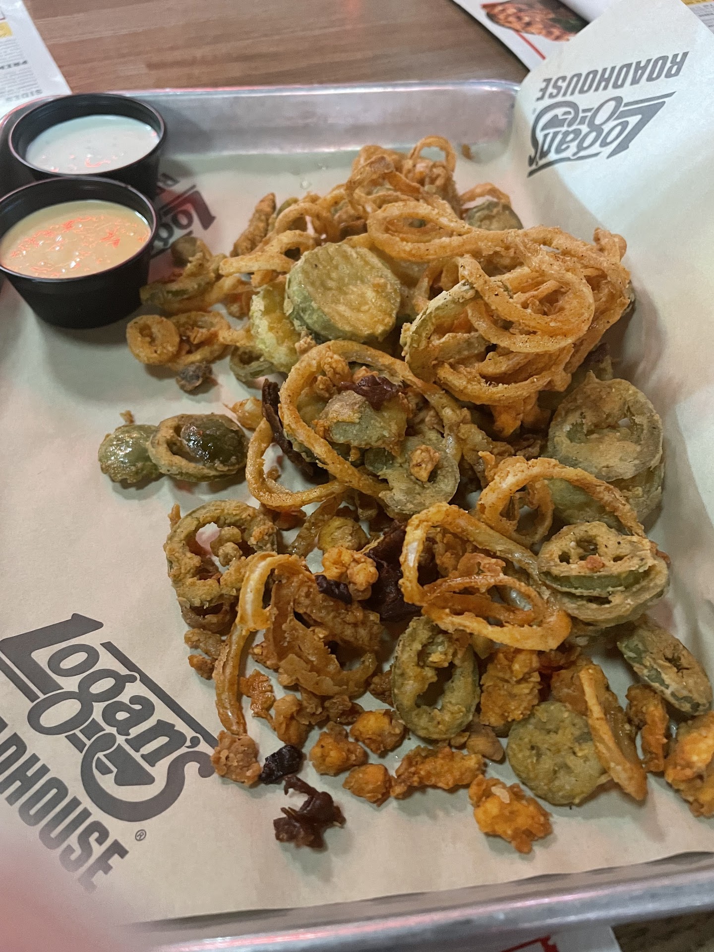 Read moreOn 1/4/24 I was very excited to go out and experience a good steak, as I was craving it all week. I was dining alone and chose to sit at the bar. There were two couples in the bar area, and the Bartender seemed to be in the weeds, and took a while to notice/greet me. He appeared to new at bartending or not very well versed on the bar set up which looked bleek and unorganized/ messy. I ordered the Porterhouse Med, with a salad and baked potato, rbs add on, and onion rings as an appetizer. After getting my beverage, I prompted the Bartender to gather rolls and butter and requested my salad. 7+ minutes pass, and I mentioned it, and was told he needed to make it. I assume he had entered my dinner order at that time, and realized there were no Baked potatoes available. This was at 6:45 p.m. I was perplexed at how this was possible so early in Dinner service. Substituted for onion strings. Again after 20+ minutes my steak arrived after I requested he check to see if it was in the window. It was, however the rings nor ribs were with it. Steak was cooked appropriately but had been dying in the window. Eventually received ribs sub par, and onion rings. Rings were hot however came as 4-5 oversized cuts WITH OUTER SKIN/RIND ENTACT AND DEEP FRIED INTO 2 LARGE CONECTED CLUMPS OF MALARKEY. I was beyond disappointed, as I had been really looking forward to this treat for myself. I rarely if ever spend $55+ dollars on myself at a restaurant, and could not justify or truly appreciate doing so at this or any LOGANS having endured the experience I had. đ€ Please do better. I recall much better in times gone past. Please advise.