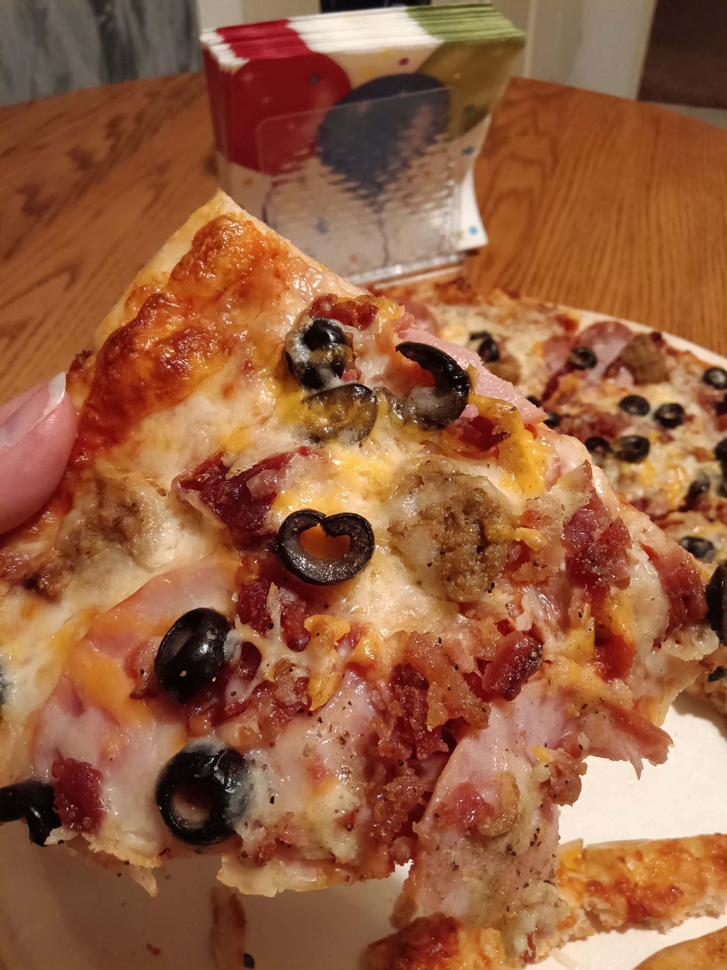 Read moreThis has got to be some of the best pizza I have ever had. We had the five meat layered pizza and another specialty pizza that I put my own ingredients with. The layered Pizza rose to about to three inches high. We put it in our oven and it was fresh and delicious. There was no sogginess or that kind of old taste of delivered Pizza. I like that we could get each pizza for $10, since I had a lot of people to feed. And they were big pizzas too, not just...