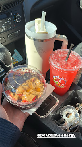 You can also get the loaded teas to go. They put the mix in a small container and put the small container in a cup. Later you can pour the small container into the cup and add your water and ice.