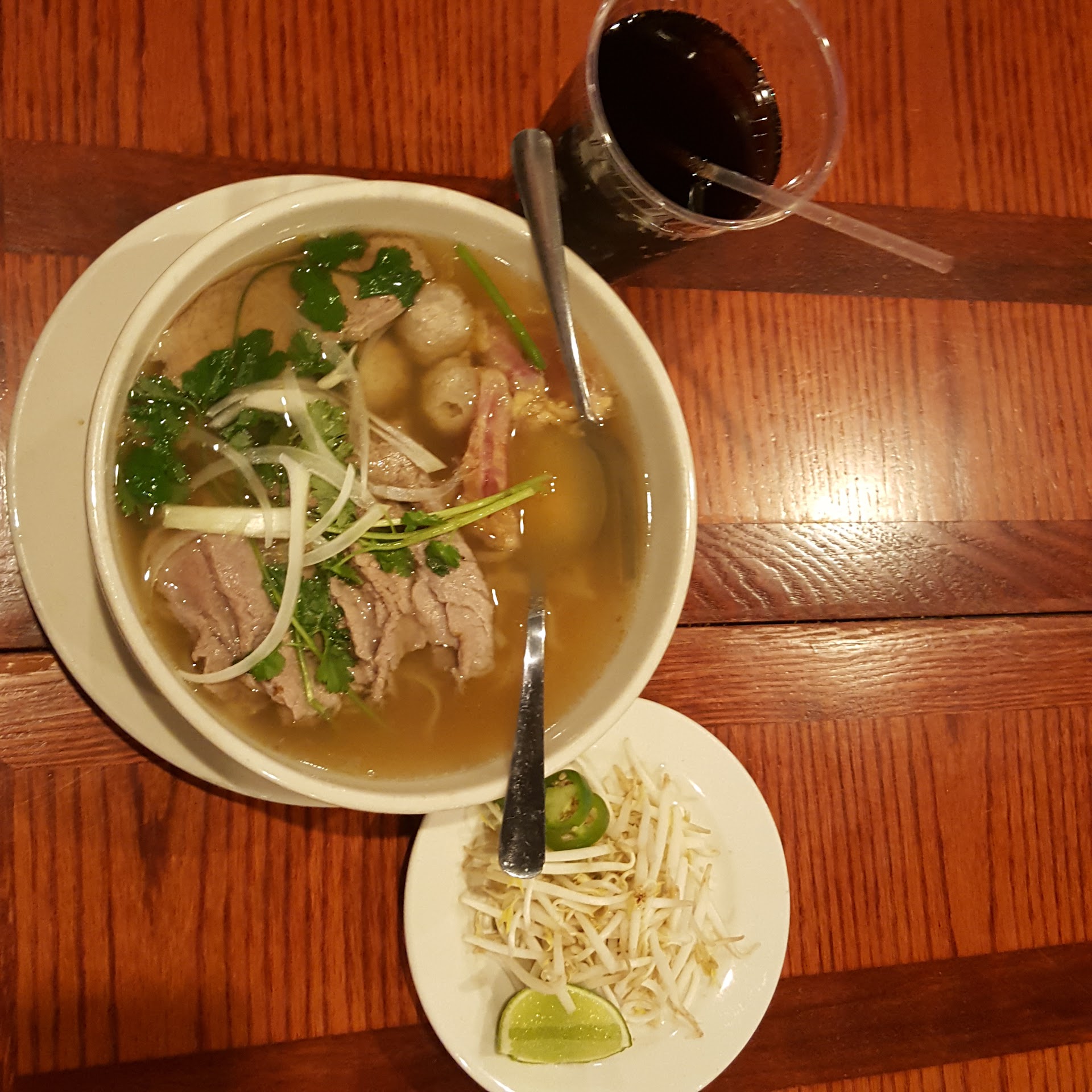 I started with the fried tofu appetizer, which was fine. There are restaurants in the region that have better fried tofu if that's what you're after. I ordered the pho with meatball and medium rare beef. Personally, I think the meatballs missed the mark. They were a bit bland, which left a lot to be desired. The beef, however, was a generous portion and was very flavorful. The pho broth was fantastic, and personally was both mine and my husband's favorite part of our meal. All the additional sauces offered at the counter to doctor your broth to your preferences was a great sight to see.