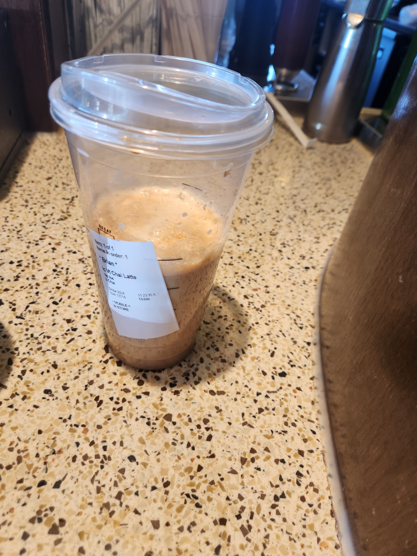 Read moreWe were on vacation and headed out of town. I had previously stopped at the Starbucks in Target right down the street for coffee because this store wasn't listed on the Starbucks app. My coffee from target tasted like burned chocolate so I decided to hit up the store I'd just passed. When pulling in I noticed the drive thru wrapped around the building and in the road so I decided to go in. I was able to place my order fairly quickly. Then I went to the end with the herd. There were probably 15-20 people waiting on drinks. It took about 18-20 minutes for my drink to be served. The girl behind the counter informed us that they were short handed and drinks would be out as soon as they could. All the while , no one moved with a sense of urgency. Employees were chatting and laughing with each other, moving as if the store was empty and no one on the other side of the counter had a schedule to follow. After finally receiving my iced coffee it was made wrong. No classic, No vanilla. Just coffee and cream. There was no way I was going to return the coffee and wait another minute in that store. I just counted it as a loss. Worst experience in a Starbucks to date The pics I've uploaded is to show how much of each drink went into the trash. I tried to drink them but just couldn't stomach it. The drink with the sticker is from the store on this review. The cup that has been written on is from the Starbucks inside Target (they were out of venti cups). Based on my experiences, someone from Seattle needs to come down to Missouri and...
