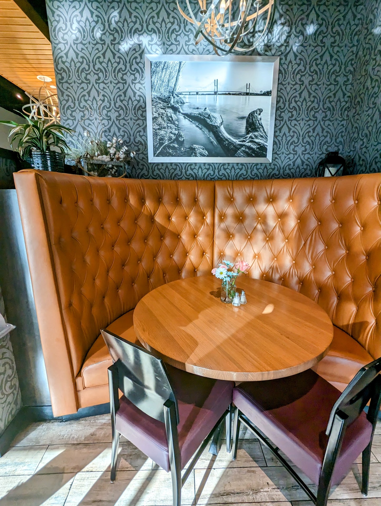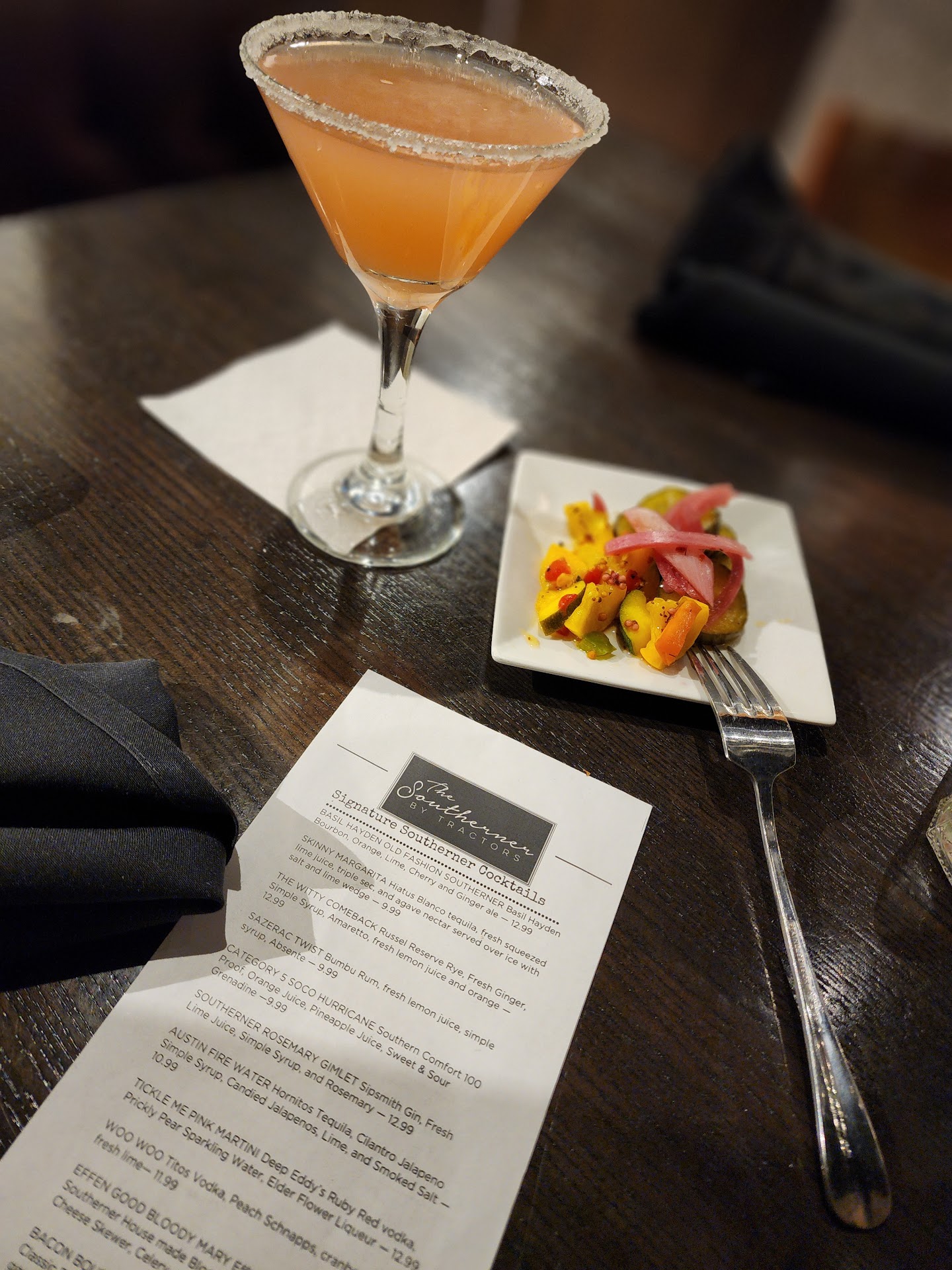Read moreThis is a newer place that, as its name suggests, offers Southern based dishes. Google Maps identifies it as a bar and grill that's not what this place feels like. The inside decor is clean and fresh with large Buffet booths and 4-top tables. Floor-to-ceiling glass surrounds two of the outside walls making it feel very open. Everyone in our party was sensitive to gluten, and we were happy to see that the menu identified menu items that were either gluten free or could be made gluten-free. It made it much easier and more enjoyable to read the menu and make our selections. We started with the tortilla chip appetizer that came with a medium spicy salsa, guacamole, and white queso. We ran out of chips before we had finished the condiments and our server promptly refilled the bowl for us. I had the pork chop and it was outstanding! My wife had the tacos which she said was "just okay." My daughter had the tuna and loved it. My son-in-law had the meatloaf and thought it was also outstanding. We enjoyed the relaxed atmosphere and the attractive surroundings as we ate our meal. No room for dessert this time! Even though they have some pricier menu items with entrees in the $30 range, we enjoyed our meal for 4 (no drinks) for $85 total including a 20% tip. I look forward to returning and trying some of their...