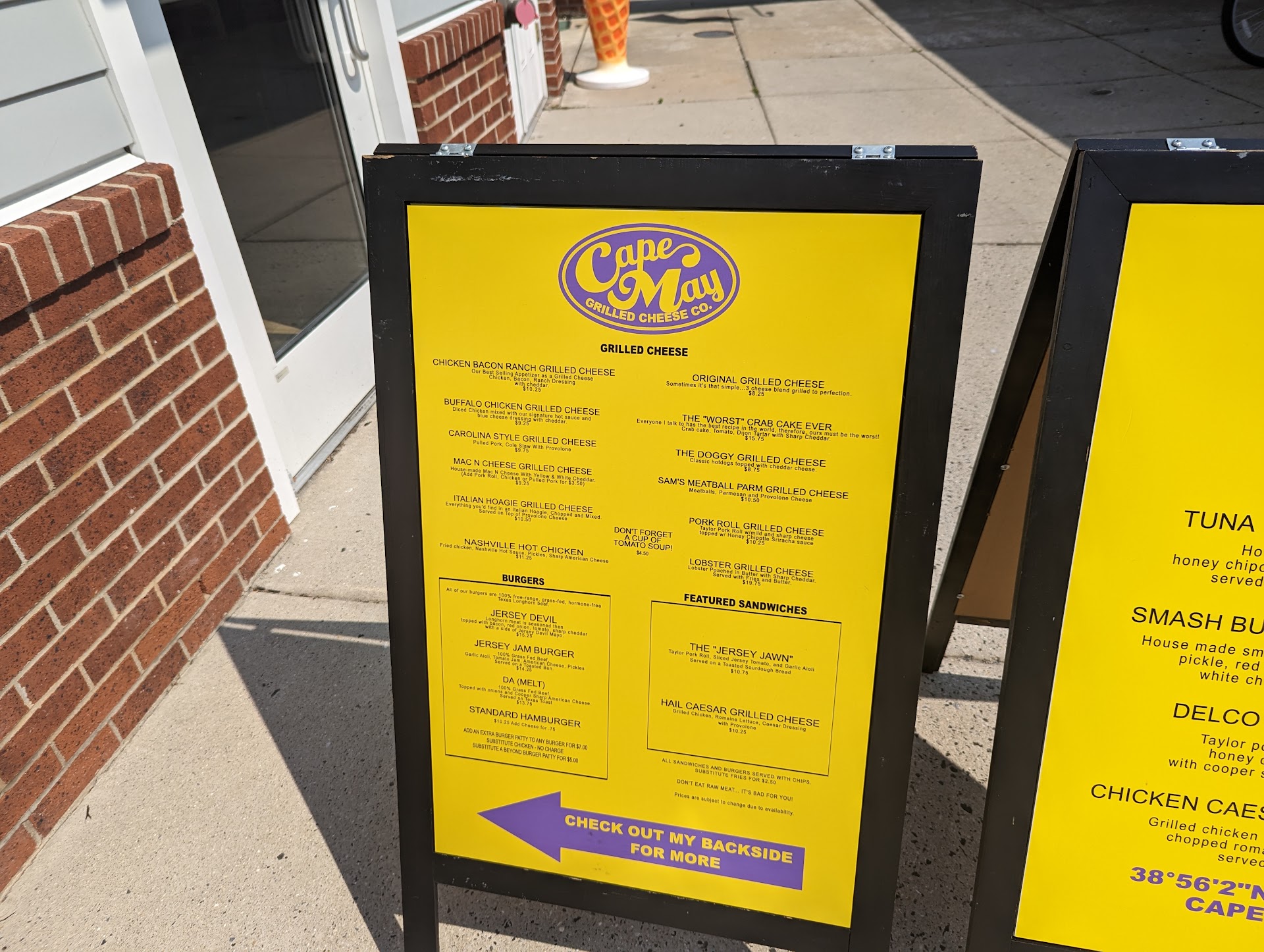 As everything else in Cape May, ridiculously expensive because of the taxes and all of the fees and everything else that that town imposes on every single business there. It's food is not worth the price that you're paying as you're literally getting a regular sandwich for around 8 to 12 or $15. And I am not talking about a Subway sandwich, I am talking about a loaf of bread, a slice in that loaf, with a little bit of cheese and some meat in it and they're charging an exorbitant amount of money for that product. This does not include a drink nor does it include fries. It does taste good, but the taste is drowned out by the price. It is not worth it unfortunately unless you have a lot of cash that you just want to throw away. Or if you want to go and see very famous paintings with grilled cheese sandwiches painted or added into those...