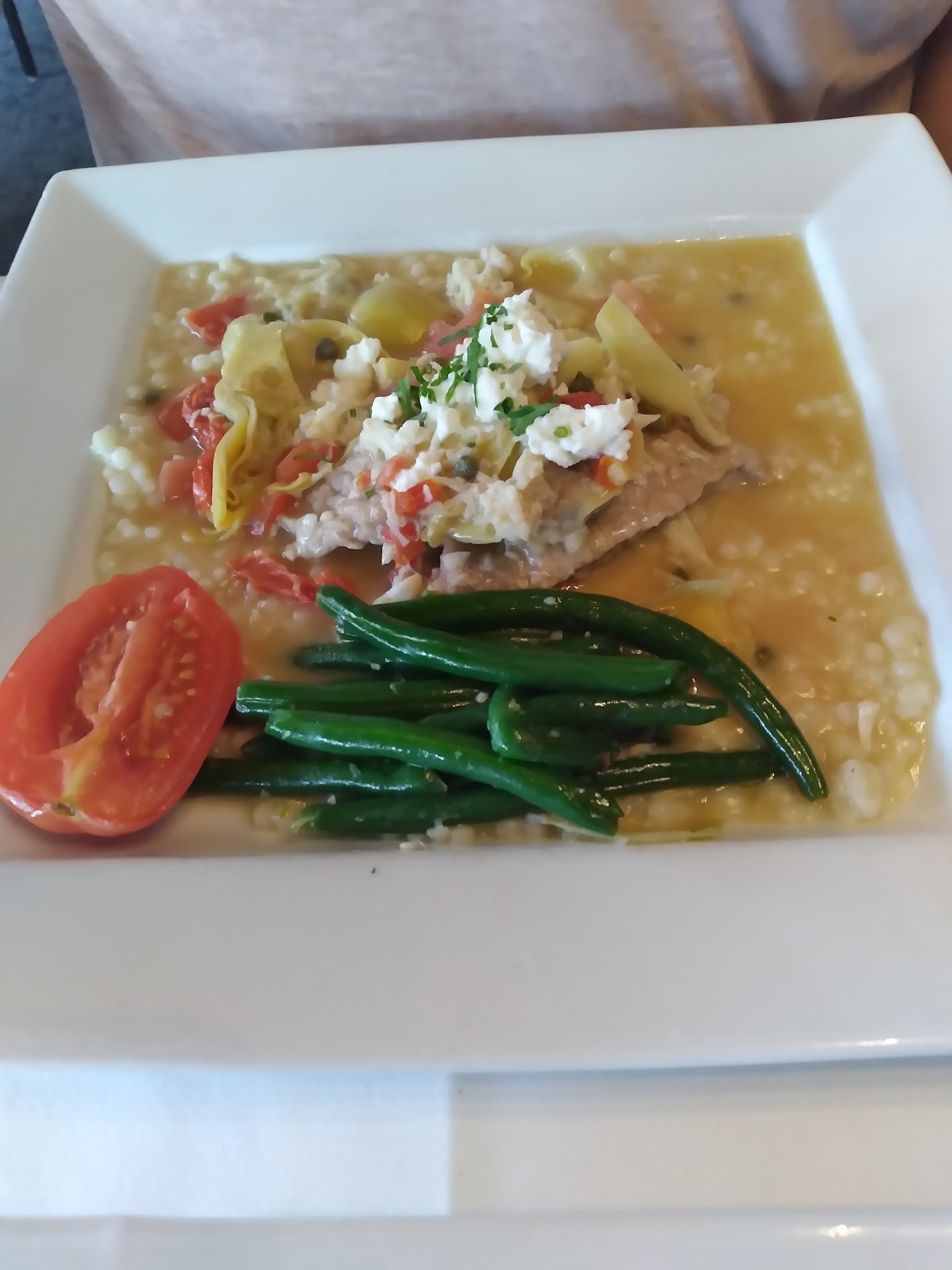 I chose the crab cakes and risotto and my husband got the branzino and risotto which was the special of the night. My husband does not eat very much seafood or fish but he wanted to try something different and said the flavors of his meal were fantastic! I loved my lemon risotto which paired perfectly with 2 delicious crab cakes loaded with fresh crab and barely any filler!