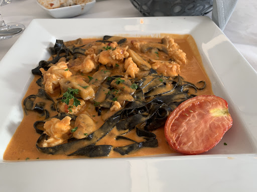 The food was amazing. The fresh bread was nice and doughy inside with a nice crust of the outside. The sauce that came with it was nothing I’ve ever tasted before. Was sweet and spicy and salty and sour; all the flavors were beautifully balanced. We ordered the fried calamari. A very generous portion. Nicely fried and decadently tender. The sauce was on point as well. Could have eaten a whole bowel of the sauce as a soup. My partner and I both ordered the lobster pasta. Beautiful chunks of sweet tender lobster tail meat. The sauce was like a vodka sauce but it wasn’t; it was fantastically balanced between savoriness, just the right amount of sweetness, tartness and umami. The main reason we chose the lobster pasta was because of the squid ink fettuccini. We were both curious about squid ink as neither one of us has ever had squid ink. The flavor of the squid ink gave the pasta just that little bit of something extra but it was hard to explain. It wasn’t fishy at all, just tasted lovely. I think the pastas were freshly made in house. Was perfectly al dente with a great chew and toothsomeness.