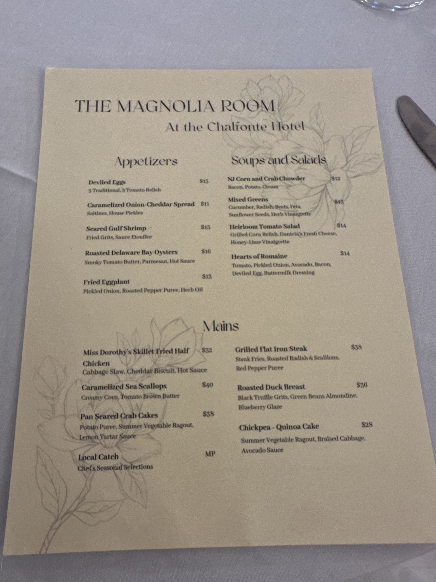 Read moreBooked an 8pm reservation and asked specifically for outdoor dining. Hostess said not a problem. Show up a bit early, hostess tells us outside isn't available, we'd have to wait up to an hour. Fine we'll take the inside. Ended up leaving an hour later, all of the outdoor tables were completely cleared. Obviously they didn't want to bother, which is fine. Then don't say it's available when booking. Poor service on their part. On to the dining experience. Waitress was fine, attentive. The food, well that's where the experience is soured completely. For the price of the food you'd expect something good. You'd be dead wrong. This place was known for it's fried chicken. Why did my fried chicken look like and taste like KFC? Pretty dry. The biscuit may have been a brick. Others weren't thrilled with their plates either. Some okay, but nothing special. Definitely not worth it. Disappointed and would never come back. I never leave reviews unless they give me a reason to, good or bad. This is one where I feel I truly wasted my...
