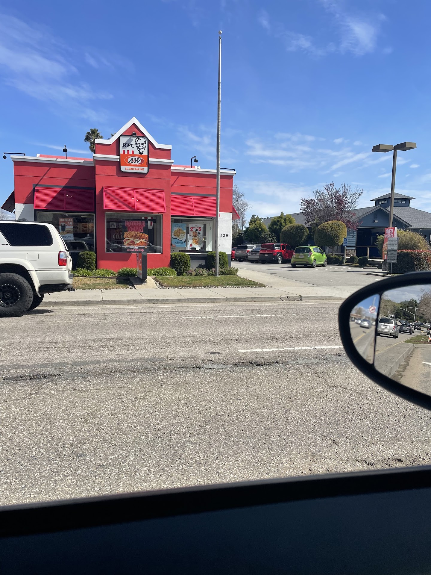 Not the place for in store dining unless you have no other options. Not an especially bad dining area, just kinda depressing like most fast food joints. Take it home and gorge on delicious chicken in private, and in peace. The crew seems especially great though.. there's an older lady who really rocks front of house, and in keeping the kitchen hustling along, and a Hispanic guy who's super polite and on top of it. The food is great.. original recipe all the way, but the crispy strips are also fire. Make sure to grab some of the Colonel's hot sauce too, it's like Tabasco ought to be. 9 out of 10. It's sad that Santa Cruz chased away the westside KFC, but it's not surprising. This Capitola location is the only KFC around, so do support it.. because once it's gone, you will miss it. Oh yeah, and the Coleslaw is amazing. There's a $30 deal going on which includes a bucket of original recipe, crispy strips, mashed potatoes and gravy, coleslaw, biscuits, and fries. It's amazing to be able to feed a family of 4 with leftovers, for $30.. McDonald's is like $15-18 for a meal per person nowadays, and it sucks. Burger King is the same now too. Oh yeah, and, this is also an A&W, so you can get yourself a root beer float, in a sad waxed cup.. no more frosty mugs or drive up dining like back in the day on Ocean St. It's sad. No more drive up, drive through, or drive in movies anymore...