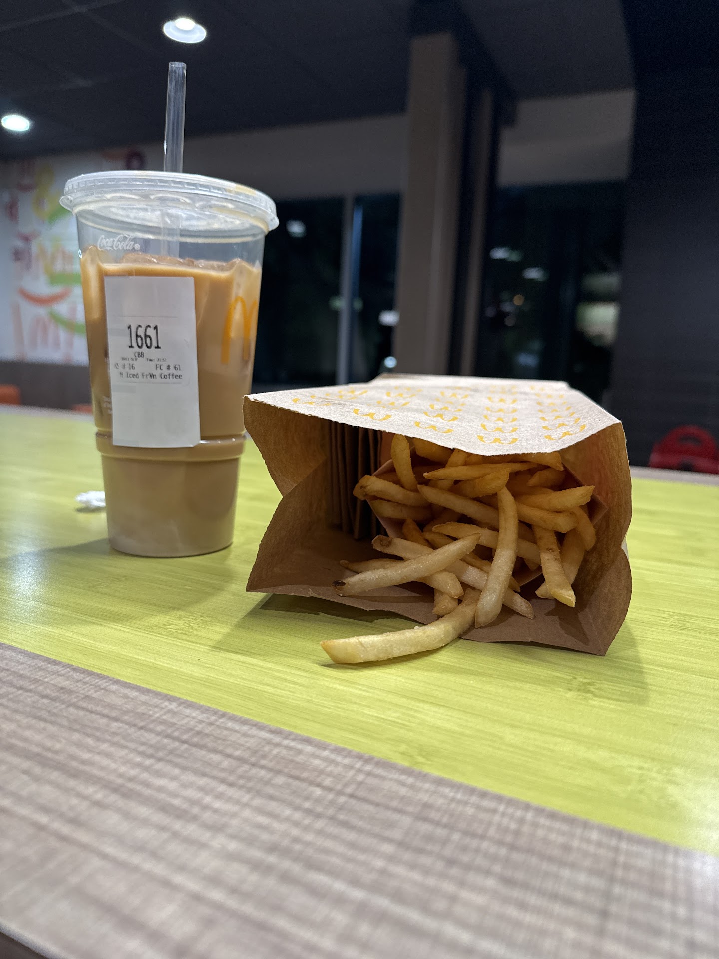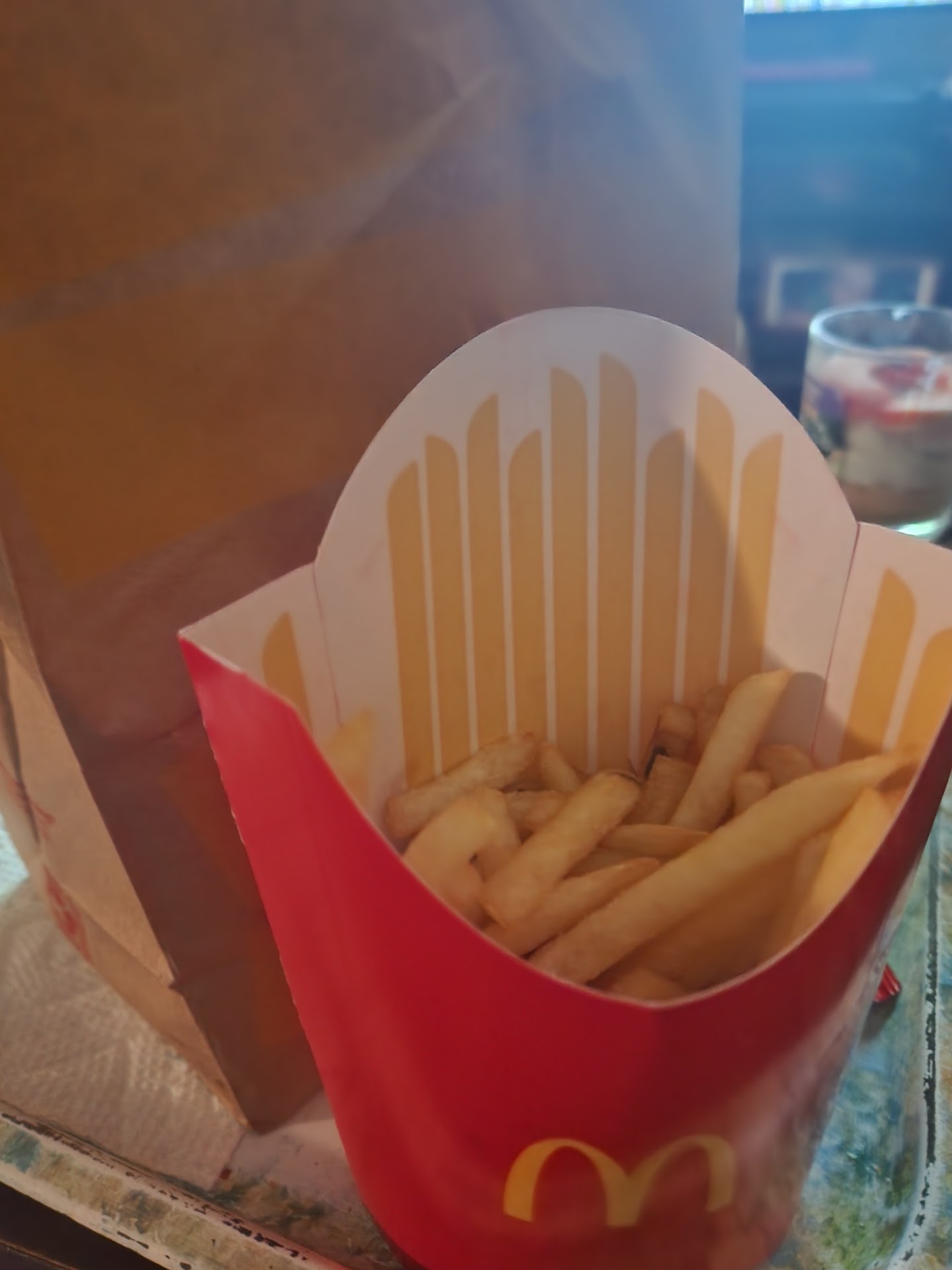The food was standard McDonald's food but definitely rushed and was warm not hot when it came out. Factoring in the service we received with the ok food I could not rate it higher.