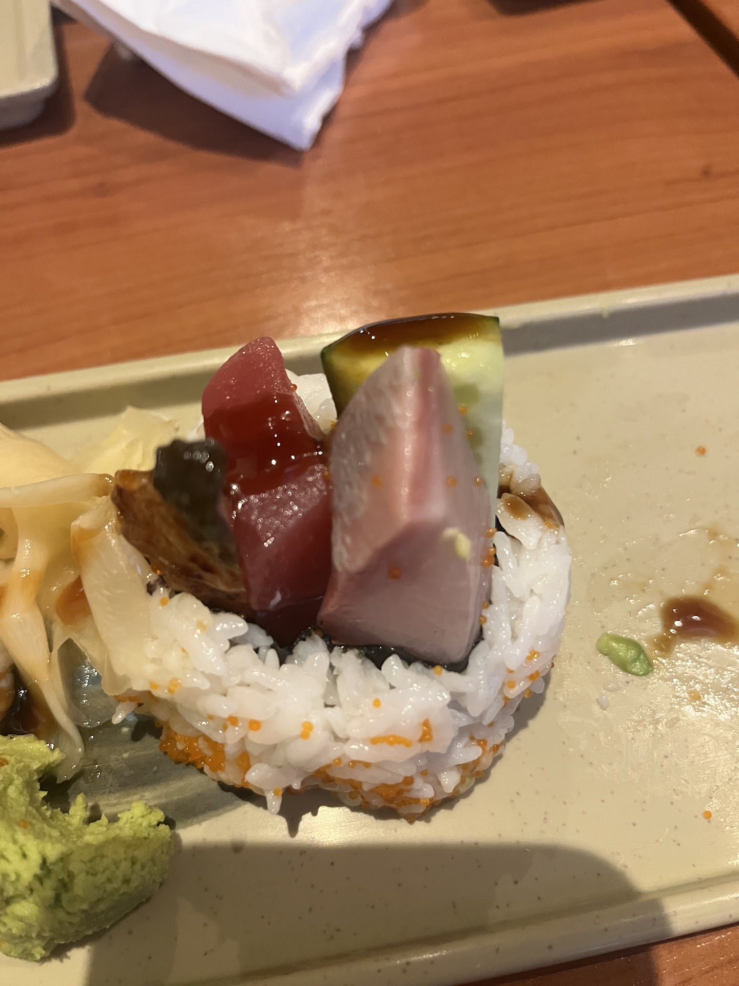 I'm not a rookie sushi eater I eat sushi multiple times a week from Rumble Fish in SV but was in Capitola and a friend recommended this place. But she hadn't been here in 3-4 years since she moved away. She was super disappointed in her favorite appetizer which is fried chicken. She also said that the rolls never used to be this big...