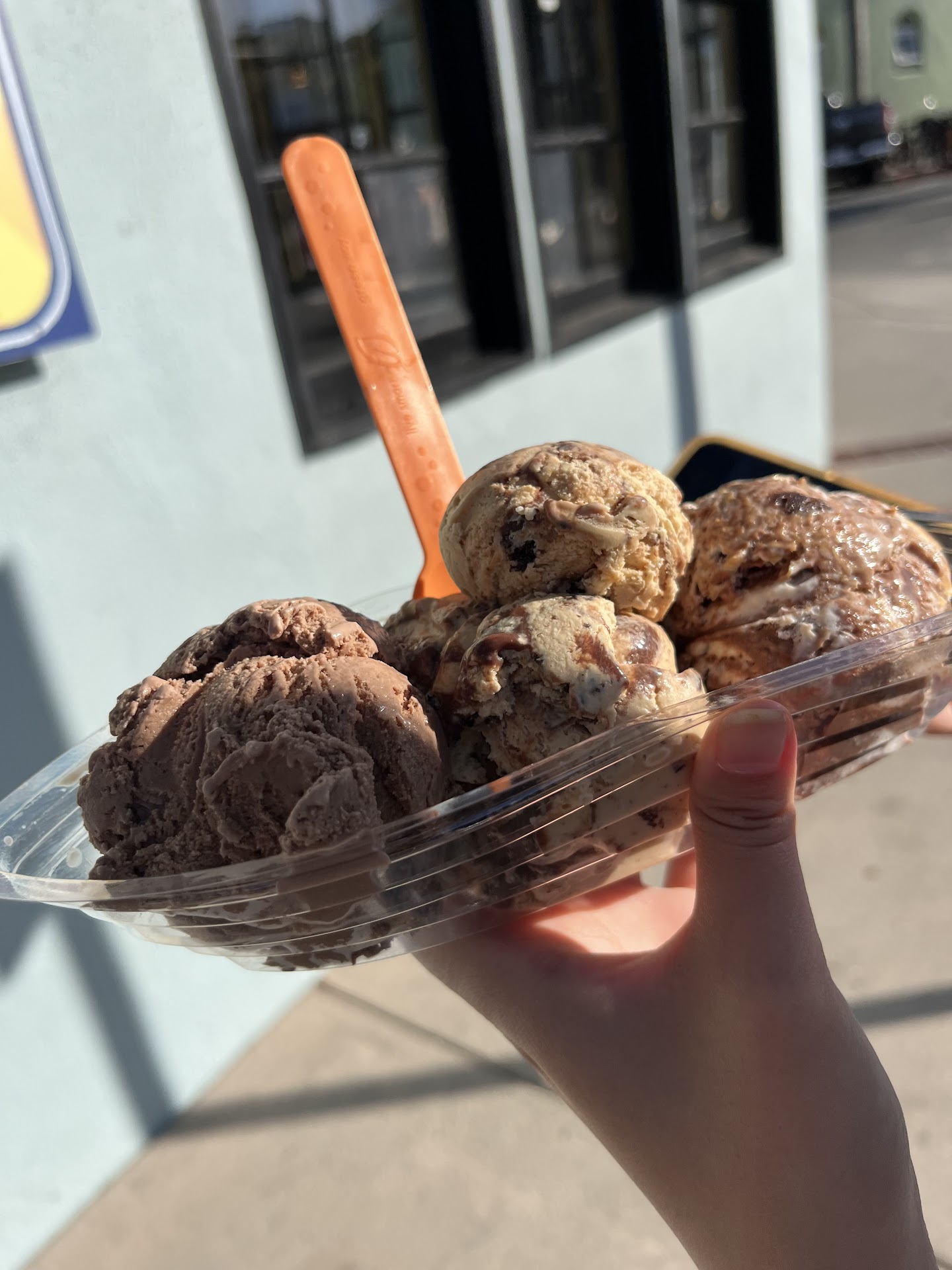 The three flavors we have chosen were all chocolate-based *Heaven - peanut butter 🧈 taken to another level, incredibly rich so it slowed us down to eat Chubby cub chocolate - the chocolate was not too sweet which made it SO GOOD! best chocolate icecream *One mysterious flavor we forgot the name of but we’ve been told it’s one of the most popular - it had some Carmel in it (the middle scoop of our picture) and if you love caramel this is a must