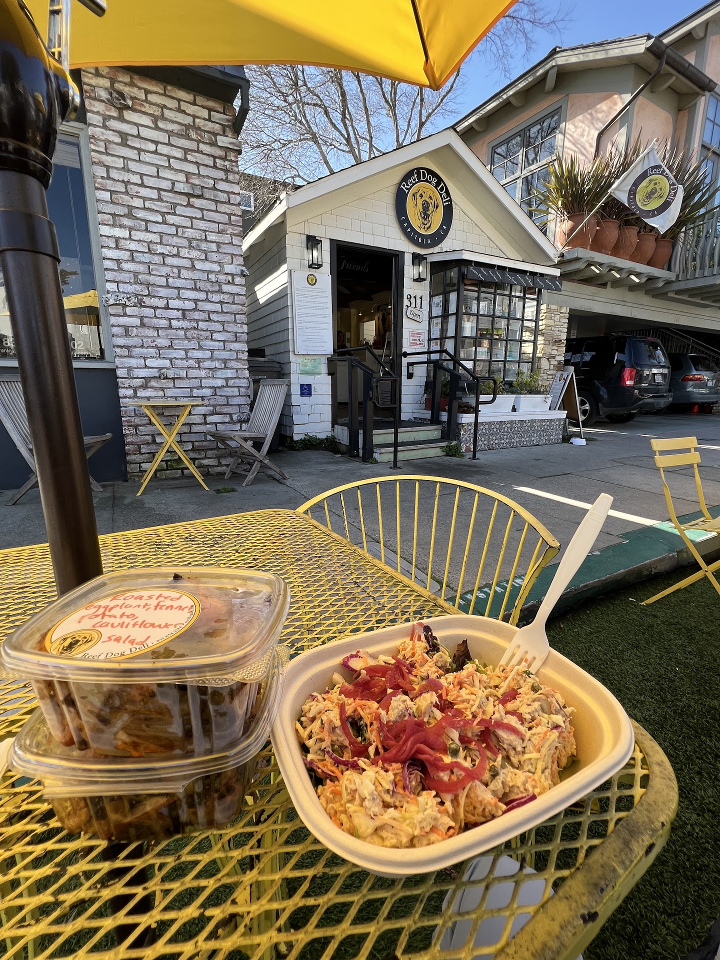 I was down in Capitola pulling my buisness liscense for a roofing project. I decided before I get back on the road I will head down the street to find something to eat. I was glad I did! The owner ! Many people go into buisness, very few are in it 100% The owner was working the cash register talking to a couple of regular customers about the salads and prepackaged ready to bake/cook halibut, tritrip, chicken, pancetta wrapped with bacon stuffed with goodness. I can't do this place justice by just naming only a few of the things they sell. I advise people to try this place! YUMMY! The sandwiches are awesome along with the close knit staff. I was intrigued that the owners dog Reef was a huge influence on the owners establishment. With pictures on the wall with his dog Reef out on the waves like his owner, surfing away a day back in time. It was really a blessing to find this place and to see the owner in love with his buisness and what he does. I WISH I COULD HAVE MET REEF. If you want to find out what a good dog is and owner and food stop by...