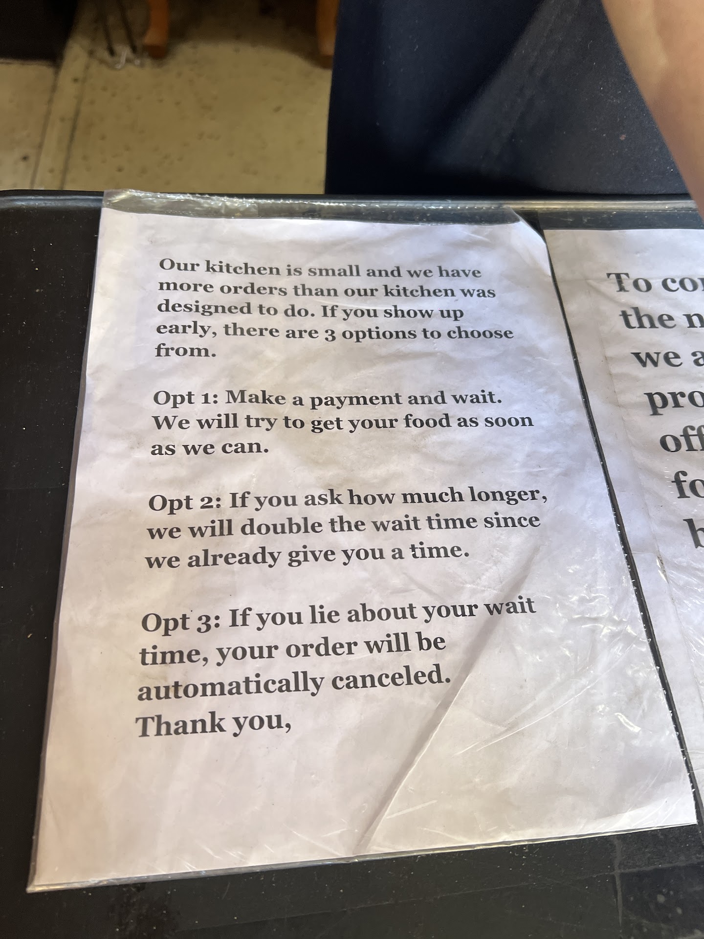 Tired of waiting for the food (I think 30 - 35 minutes is pushing it), I went inside to ask how long it was going to take. I was told that there is a new chef, hence the delay.