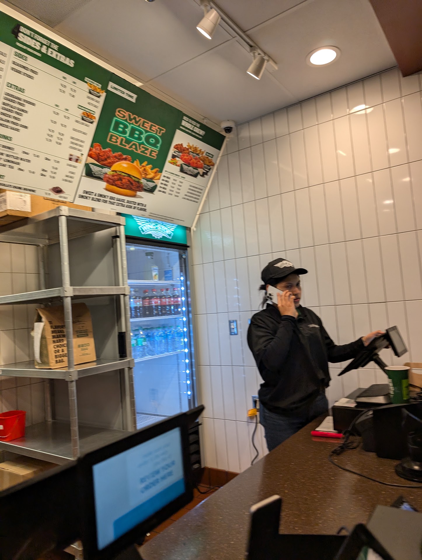 Read moreHace tiempo había dado una buena reseña sobre este lugar, fue desde que abrieron uno de mis lugares favoritos Pero ahora con la nueva administración el servicio es totalmente pésimo y muy pobre, la manager María que está ahí no sabe nada ella tiene que preguntar a los demás trabajadores y solo se la pasa maquillándose y peinándose, aunque eso es bueno para la imagen de wingstop, también es muy desagradable pues lo hace en plena cocina eso era evidente yo estaba enfrente de la registradora Deberían de poner a personas competentes o por lo menos que primero las entrenen Saben un poco más los empleados y cocineros También hay otra señora que está en la registradora, ella es cajera que solo se la pasa en el celular sacándose los mocos y picándose la nariz y rascándose el pelo fue bien desagradable el servicio no solo se equivocaron en mi orden tambien la manager no sabía nada de hacer las órdenes y estaba preguntando y diciendo que los demás trabajadores me respondieran y ellos estaban sobre ocupados y ella solo sentada acariciando a un señor mismo de los empleados se que es su vida personal y tienen derecho pero esa manager no tiene conocimiento en nada Debería de maquillarse fuera del lugar donde preparan comida y tener su vida sentimental un poco apartada del trabajo Todo en este restaurante a cambiado ya no...