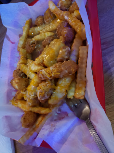 However, this place has fallen further and further into disrepair over the years. When they fix anything, it is such a shoddy-looking job it's comical. Their "decor" would give an interior decorator a heart attack. I'm talking impressionist paintings bordered by Nascar posters stuck to the wall w/colored masking tape or duct tape. One end is festooned w/the oldest, saddest, dustiest fake poinsettias ever seen. They have had 2-3 restaurants operating out of there in the past few years, but they never last, so there are long stretches w/no food at all. It's not beyond salvation, as it has redeeming qualities as well as potential. Lots of room for improvement, and this could be...