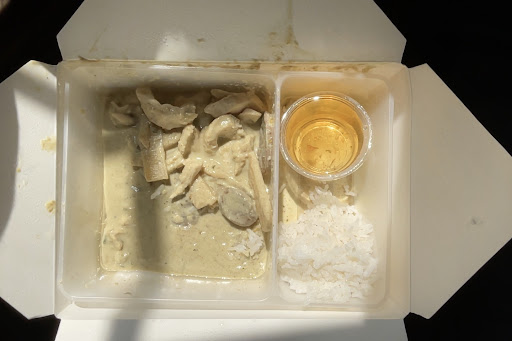 I also ordered the TOM YUM soup with chicken. It was bland yet sour making it essentially inedible (I had two bites then and one during the second tasting after which the picture was taken explaining why so much is gone). I couldn't tell where the gross flavor was coming from but I'd guess bad limes or an old frozen broth. There were no other flavors coming through including chicken, lemongrass, etc. Now, again, I waited two days to post this so I could have a friend confirm and they weren't able to come until the following afternoon. I reheated them a portion hoping the extra day didn't improve the flavor and make me look foolish but before tasting the soup, they said it smelled like "wet dog" ;-) I don't own a dog nor do they. They further described it as smelling "kind of like a kitchen sink". I do have one of those and admittedly the experiment took place in the same room. They tasted it and couldn't describe the flavor any better than I already have and added that they would have recommended it NOT be served at a restaurant they had any control over and that they felt bad for recommending it to me.
