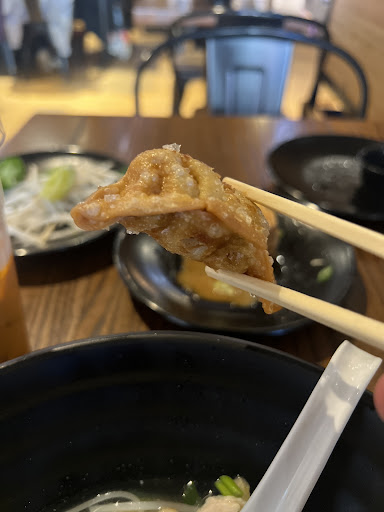 First of all I want to explain how you order here since at first I was slightly confused since I was new to the restaurant. You will go up to the front counter and they will give you a table to go to. They will also give you a menu. Then you will seat yourself, go through the menu, and pick what you want. If they donât have space for you, they will give you a buzzer and it will buzz when there is a table ready. You will pay at the front counter and get the food afterwards. The food here is very good, I got the issei chicken pho, the fried tofu, and the fried gyoza. The chicken pho is extremely good, if youâre a picky eater I think it would be fantastic since chicken pho is very reminiscent of chicken noodle soup. If you want something with more flavor and kick I suggest the ramens since there is more complex flavor in ramen in general. The portion for the soup is huge so if you donât eat much like me, then youâll be happy to know youâll have plenty of leftovers! The tofu was very crispy and not greasy which is great. I would keep in mind it does stay hot in the center for a while so be careful not to burn yourself (like I did stupidly). It comes with this sauce on top that I think is sesame based which is very nice. If you are expecting sweet fried tofu this is NOT sweet tofu. I was hoping it was and was surprised when it wasnât, but it was still very tasty. The gyoza is nice and crispy, itâs not too greasy and tastes amazing. I highly suggest them. Gyoza is also good for picky eaters since theyâre almost always the same no matter what and have simple but tasty flavors. The service is very good. The Thai tea is very rich and seems authentic. I love Thai tea so 10/10 The lady at the front is extremely considerate and friendly, very good at reading customers. They make sure to get you seated and eating ASAP and are always hustling which I admire and love. The atmosphere is lovely. I love the colors and how they made a small space feel so open. The brown they chose for the walls was probably the best for this store since it helps make it feel open and friendly. Although itâs busy as a bee, it is very calming and chill. Iâm an introverted person and I didnât feel too stressed being there alone and hanging out...