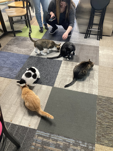Ā Ā Ā Read moreThis cafe experience has left more to be desired, that's for sure. The kitties within the establishment are very cute, sweet, and delightful to be around as well as the staff. However, the business itself seems to lack respect for the local artists in the area as it has AI art plastered all over the walls. Detrimentally disappointing to see such a thing. AI is incredibly harmful to the art industry and seeing a local business use it is heartbreaking, and frankly, a bit insulting. The cafe isn't very accessible to those who are disabled, either; the second door into the building lacks a handle and itās a struggle to even get into the place. I worry the cats may get caught in that swinging door if someone wasn't paying attention. The cafe is dull and almost visually depressing outside of the drawings made by other customers. Unfortunately, with all these things in mind, I will not...