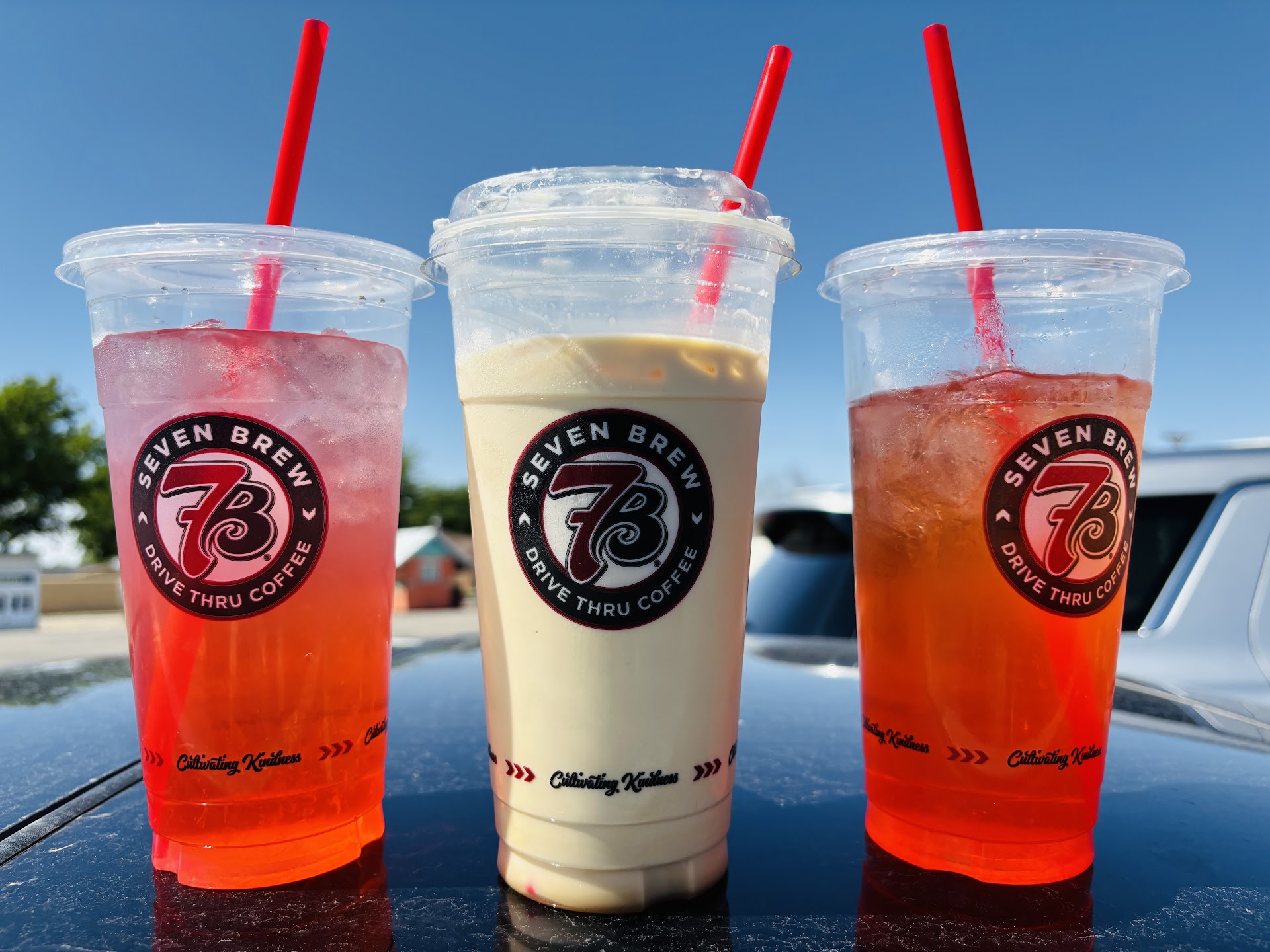 We just stopped to pick up some ice teas from 7 brews in Carlsbad. We were pulling up the drive when my elderly father spilled a hand full of ice and while my sister was ordering & having a very friendly and nice conversation with the girl that took the order, I threw the hand full (only) of ice out of the window and I must also note it’s 80 degree weather. We were finishing up the order when another clerk came in to chime in on the conversation & it all went south pretty quickly & quite ridiculous. She proceeded to tell us that “ I need to let you know that if you throw things(ice) out of your car we will have to refuse you service next time you come by here! And this is a hazard & also coming from management. I must say her delivery was so wrong, she was very snooty..and definitely needs a whole lot of training in customer service. I really felt like saying that the huge nose ring hanging from her nose could also be a hazard but I refrained from being rude to her. She had a smirk on her face & was totally obnoxious… while the girl that took our order was bewildered by what was coming out of her mouth. Well she need not worry, they will not have to refuse service.. we can just go...