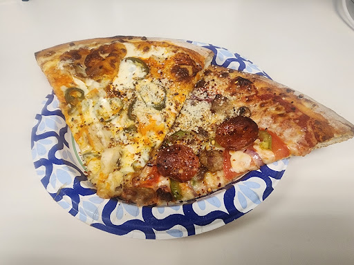 Now let's talk about the pizza! Each slice is packed with flavor and cooked to perfection. The crust is crispy on the outside and perfectly chewy on the inside, and the sauce is a mouthwatering blend of herbs and spices. The pizza is light and delicious so whether you are looking for a treat slice or a take home pie for the family, you will NOT be disappointed