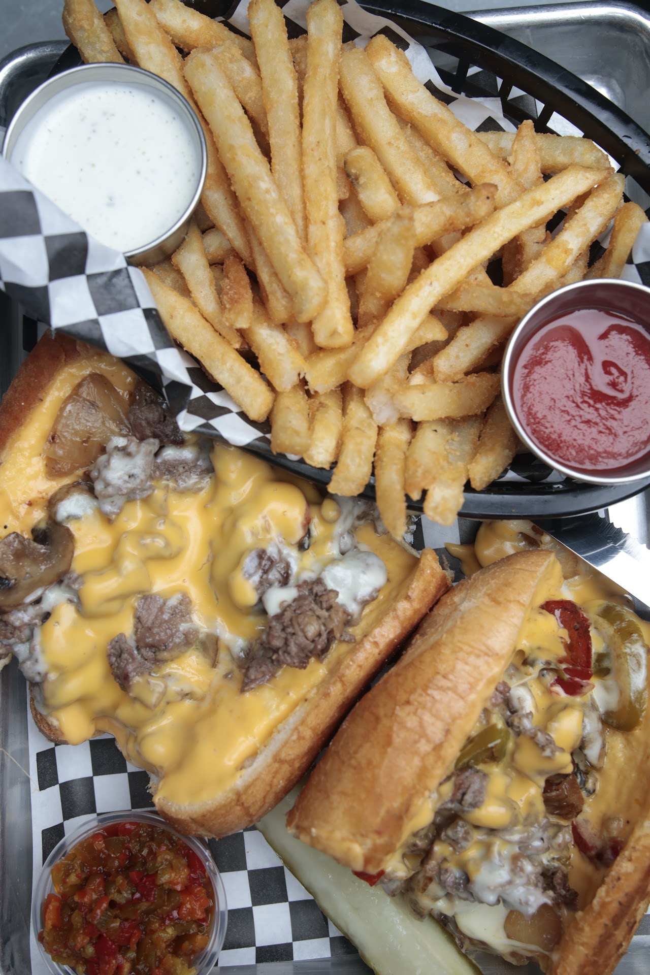 Philly Billy ($24) This isn’t just a cheesesteak; it’s a love letter to Philadelphia’s iconic sandwich. Tender ribeye beef, oozing double cheese (a heavenly combination of provolone and their signature AHB Whiz), grilled onions, mushrooms, and sautéed cherry peppers combine into a flavor explosion. Each bite is perfectly balanced—savory, cheesy, and just the right amount of spicy. Served alongside a generous portion of crispy fries, this dish is worth every penny.