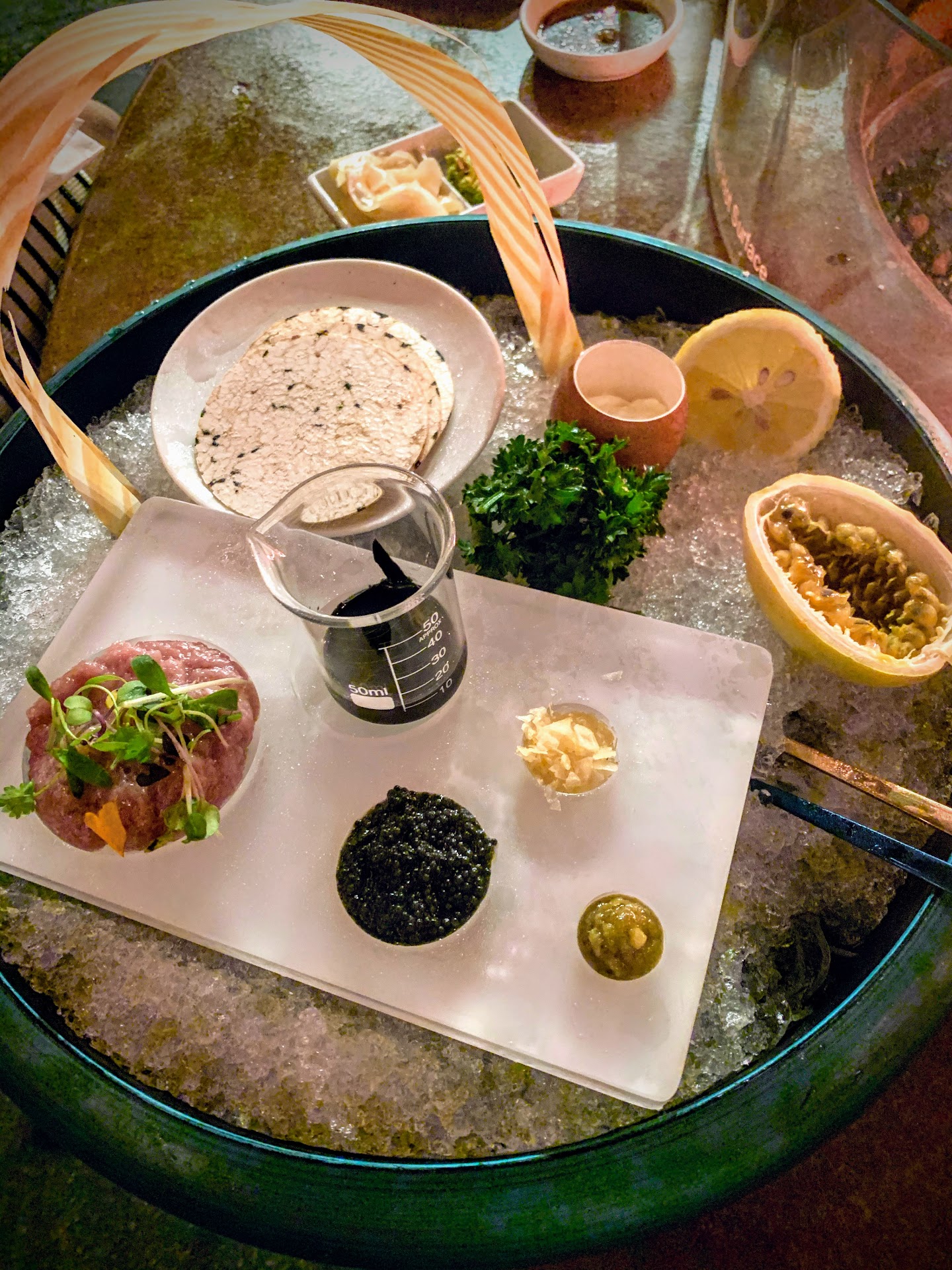 Lunch is super adventurous adding bibimbap (Korean) and pita pocket bread(greek). The pocket bread has daikon, taro chips and chipotle adobo. All bold flavors that strangely work together, but itās a Frankenstein of influences on that one. They should have use the yakitori chicken for at least some semblance of Japanese food. Bibimbap lacks some flavor nuances of real Korean version, but is a nice filling item. Love the hibiscus sweet & sour sauce for the potsitckers, which are bland without it. Sesame soy needs yuzu. Blue Ocean bowl is actually a good deal, like they put 2.5 rainbow rolls ingredients in a bowl. They donātā MP the Bluefin, yet jack up the price of other items like Uni and Geoduck. Amebi is a good deal considering how fresh and seasonal they are, again no MP. Carmelized egg plant is excellent, but the one thing it needs is roasted cauliflower and some citrus to cut the sweetness of the cashews and sauce. Maybe some heat too would really round it out. Scallop is love and priced that way. No other version is available. Iām not going to warn anyone on the Escolar or Walu, Iāll let you google that one, but itās something that doesnāt affect everyone. Iām immune to it, but the fact that they offer it scares me.