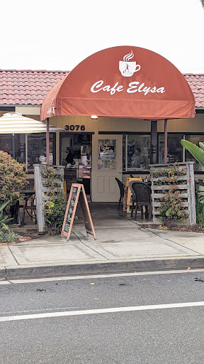Elysa Cafe a food enthusiasts haven a place where your flavor pallet experiences bursts of pure delicious savory bliss. We really enjoy the cappuccino's here the sandwiches and burgers are delicious. Love the side options your not stuck to just fries. You can choose between salad, fruit, and the traditional fries. Their menu options are plentiful as are their drink and dessert options. I dont think you can go wrong with whatever you order. The outdoor dinning options seem a little dated but its great large round tables comfortably seat you and your entourage. The fire pits help keep you warm in cool chilly California winter days. As you enjoy your breakfast, brunch, lunch, or whatever you want to call it nowadays. The bathrooms are kept up nicely and clean. The staff is gorgeous and pleasant. The foliage is green and the palm trees add a very nice touch. Parking is good. Located in the Carlsbad Village downtown area, very close to the Carlsbad State Beach where you can conveniently go for a nice long walk on the beautiful strand. Highly recommend you take your chances here. This...