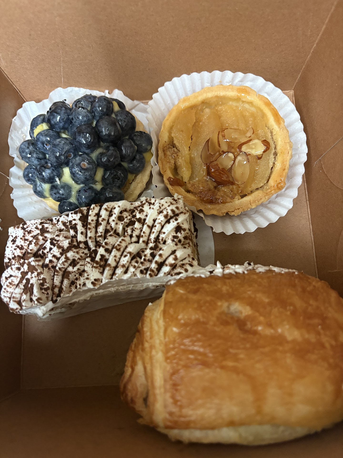 Read moreThe place looks nice on the inside but it was so cold inside on a beautiful day that people trying to enjoy this cafe had to be in coats. It was colder than a hospital. Poor service, they kept rushing me to order when nobody was waiting in line and when I had questions their response was “I dont know,” the correct response is “I don’t know but let me find out. Now onto the food, all I can say is this is a low end bakery trying not hard enough to be a French Bakery. If you want phenomenal tasting French desserts and parties and great customer service I highly recommend Paris Baguette in Carlsbad. I ordered the pear tart, blueberry fruit tart, tiramisu cake and a chocolate croissant. I am from Europe where we have phenomenal food so trust the review. -The tiramisu cake was underwhelming and the cream on top was gross so I have to remove it. -The pear tart was very dry and the pears had no tase to them. -the blueberry fruit tart also disappointing because the cream wasn’t that good and there was barely any of it in the tart because they add in this grain junk under it when it’s only supposed to be the crust, cream and blueberries. The only pro was that the blueberries were really good. -The chocolate croissant was pretty good. Buttery and flakey and the right amount of chocolate. My total was only $23 which is very low but it makes sense with the low quality food. I will definitely never return and continue going to Paris Baguette because the cream they use in a lot of the pastries is phenomenal! Definitely not like the Boston cream crap at Dunkin Donuts. Yes Paris Baguette is pricey but you get what you pay for and they have a rewards program which is awesome. I would have rather saved the $23 and gone to Paris Baguette (no I don’t work there, it’s just the food is amazing!)