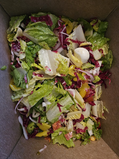 The Padrino Salad was less than spectacular. Even cumbersome trying to chase the selected cuts or torn lettuces and garbanzo beans to stay atop a fork; or perhaps, trying to stab the overly tossed, now limp and well lubricated with dressing, garden greens. The pizza crust helped attack the salad on fork combination.