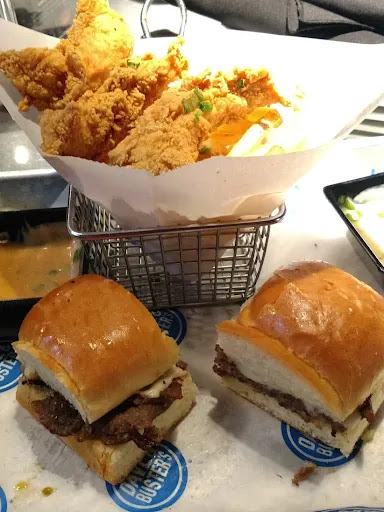 The food is decent. Mostly bar-type food. But, my kid is picky and the chicken tenders are a favorite. So, itās nice to be able to go somewhere that both my kid and I can enjoy two different kinds of entertainment and have lunch at a semi reasonable price.