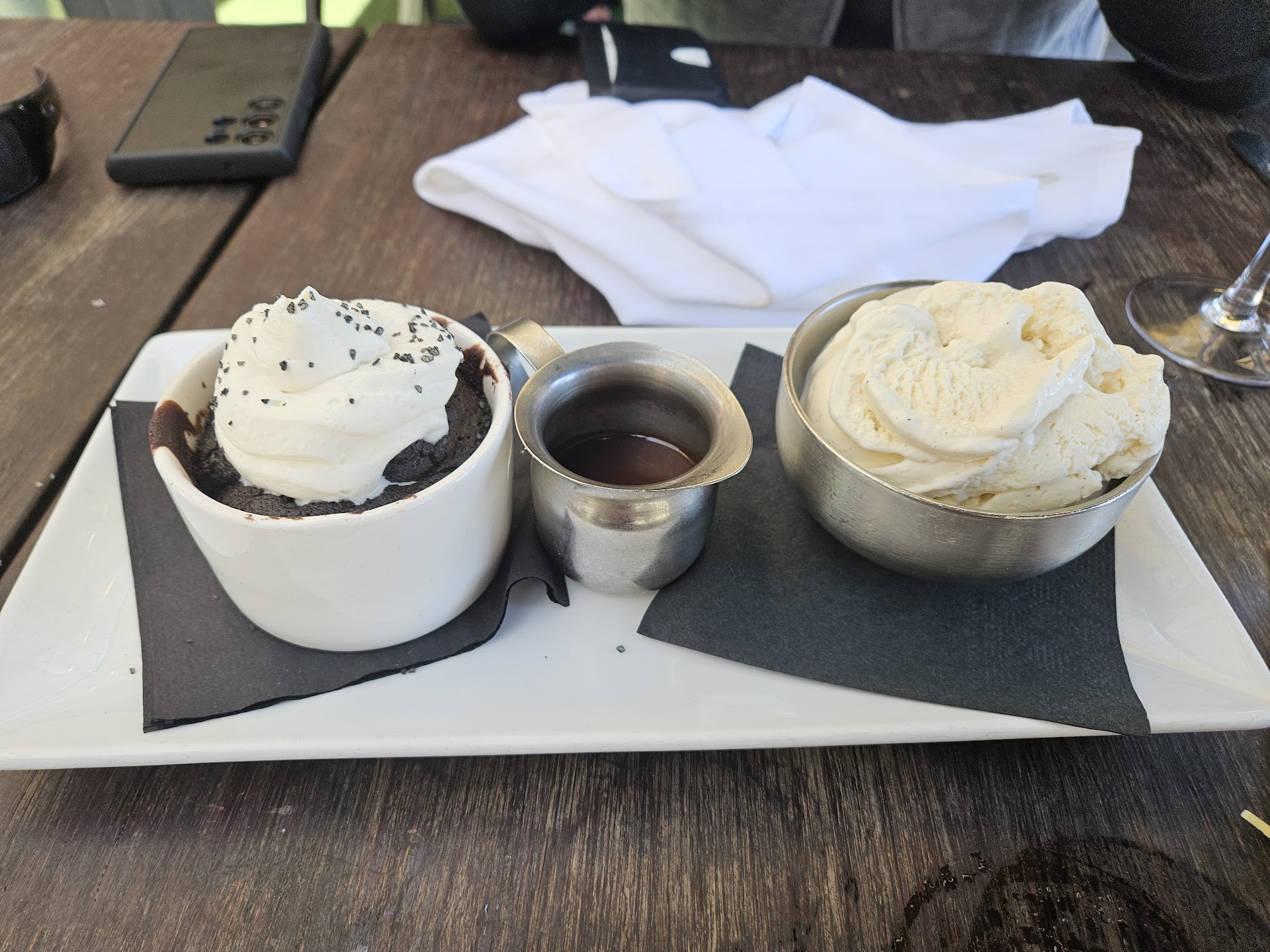Ā Ā Ā Read moreWalking up to this place is unique in that 2 other businesses share a number of outside fire displays so, upon entry in the evening, it looks fantastic. As I approached, a sign was shown promoting excellent whiskeys. I asked the hostess what whiskeys make it known to be great and looked confused, but made the best and pointed above where locked bottles were displayed. The atmosphere projects a low light calm yet high end vibe. There's a slim menu w/ Whiskeys and upon asking the server if that was the price, she said I'm not sure and pointed to one at 600 (no dollar sign to assist) stating there's no way this one's $600. Well, she came back in disbelief and stated yes those are the prices and yes that one is $600. The actual menu is great. A one page offering of "American" food. I had the double smash. The set up here is to present as high end. The fries came in the metal holder w/ accent and petite burger. Upon digging in and finishing I can say a couple things. The burger is forgettable. Pretty bland and if it wasn't for my son giving me his other fish (fish and chips) I would've left still hungry. Circling back to product knowledge, I'm concerned the business is losing opportunity for amazing Whiskeys to be enjoyed as the staff doesn't exude knowledge. Although not to be bartender level in that department, at least the 10-12 displayed at each table should be expected to know or highlight. I'd train the staff to ask if this was there first visit, let me tell you about this place, and when you look at the drink menu, here's what it's all about. That way we're engaged and willing to try new items. Lastly, there's a Margarita for $45. There's just no way! Unfortunately won't be coming back nor promoting to anyone based on current standards. Perhaps...