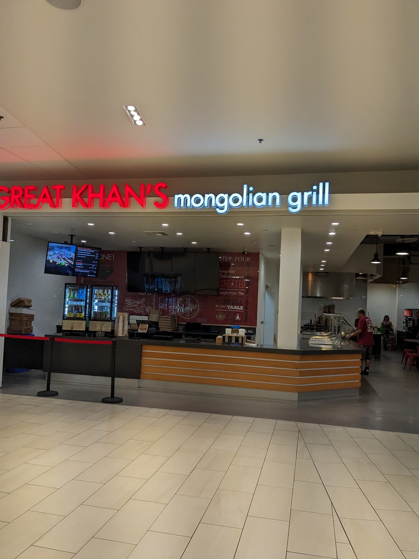 Read moreFirst time at this mall and nothing was explained to me about this great khan restaurant. The Hispanic lady insisted on noodles Insaid Iâm gluten free I canât have noodles she gave me one bowl refused rice and said they didnât have rice and then re used a bowl for vegetables I got very little food very cheap food for a very expensive price. Tons of sauce was doused in my bowl which was no linger gluten free andni wasnât asked by the cooks they jsut handed me my very hot food walked away and let the sauces sink into paper bowl I had something very spicy in my food. I wasnât asked I did no spice for a reason. Inwant my money back terrible cheap and expensive food and no...