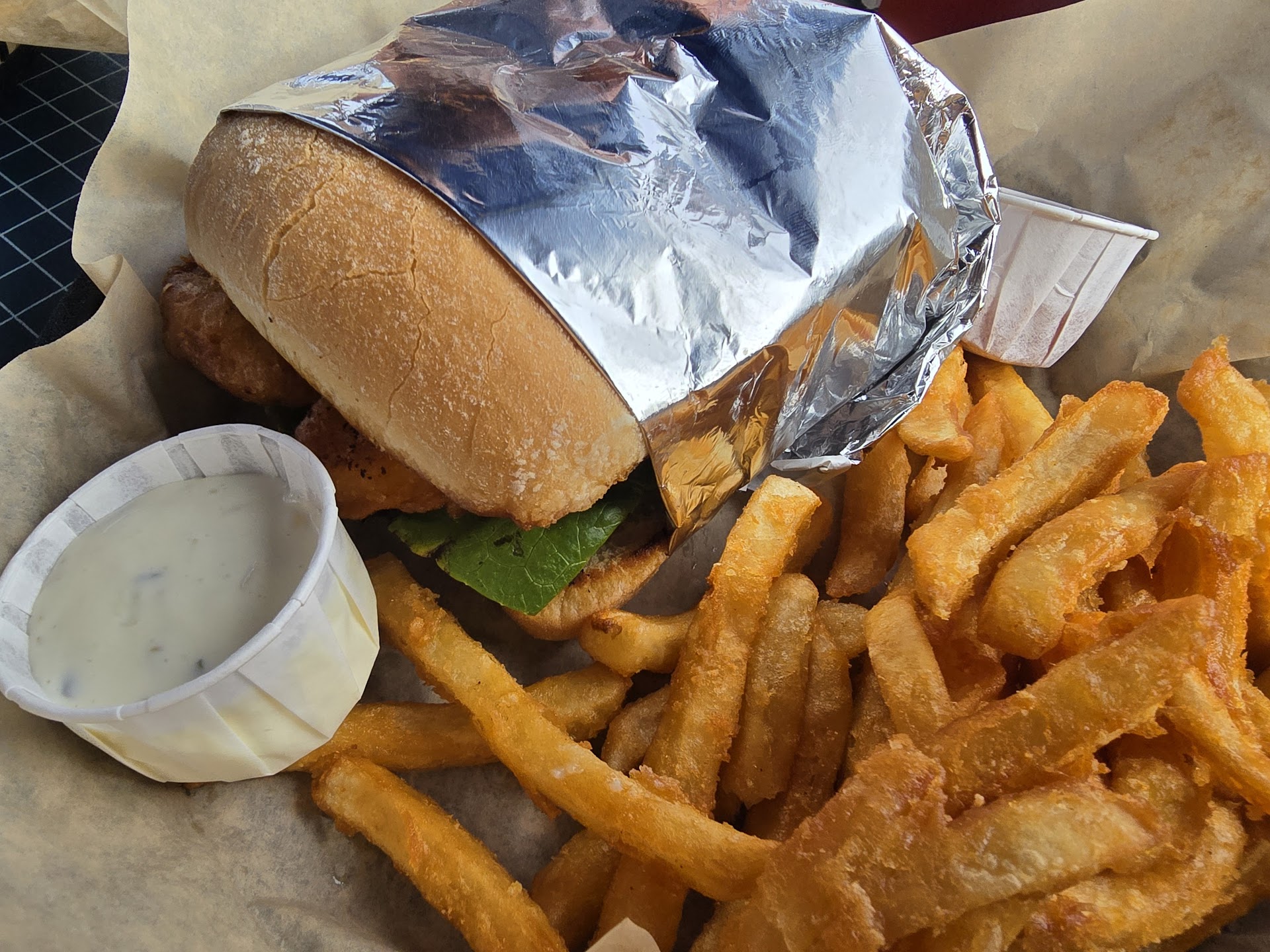 Read moreMy husband and I decided to stop by at Harbor Fish Cafe for the first time. Since we're preparing to move out of San Diego we're trying some places where we've never been. This place is all outdoors, not too fancy, with picnic style vibes and feel and a nice ocean view and cool breeze. The menu is very simple - I had a Fish 'n Chips: it's a flaky white fish, save its breading, was mostly without flavor but very greasy, accented by average tartar sauce and ketchup for the French fries, the latter which was crispy with Cajun style powder. Though the fries weren't tossed but just had their seasoning added on top. Lastly I had a Corona beer to top things off.