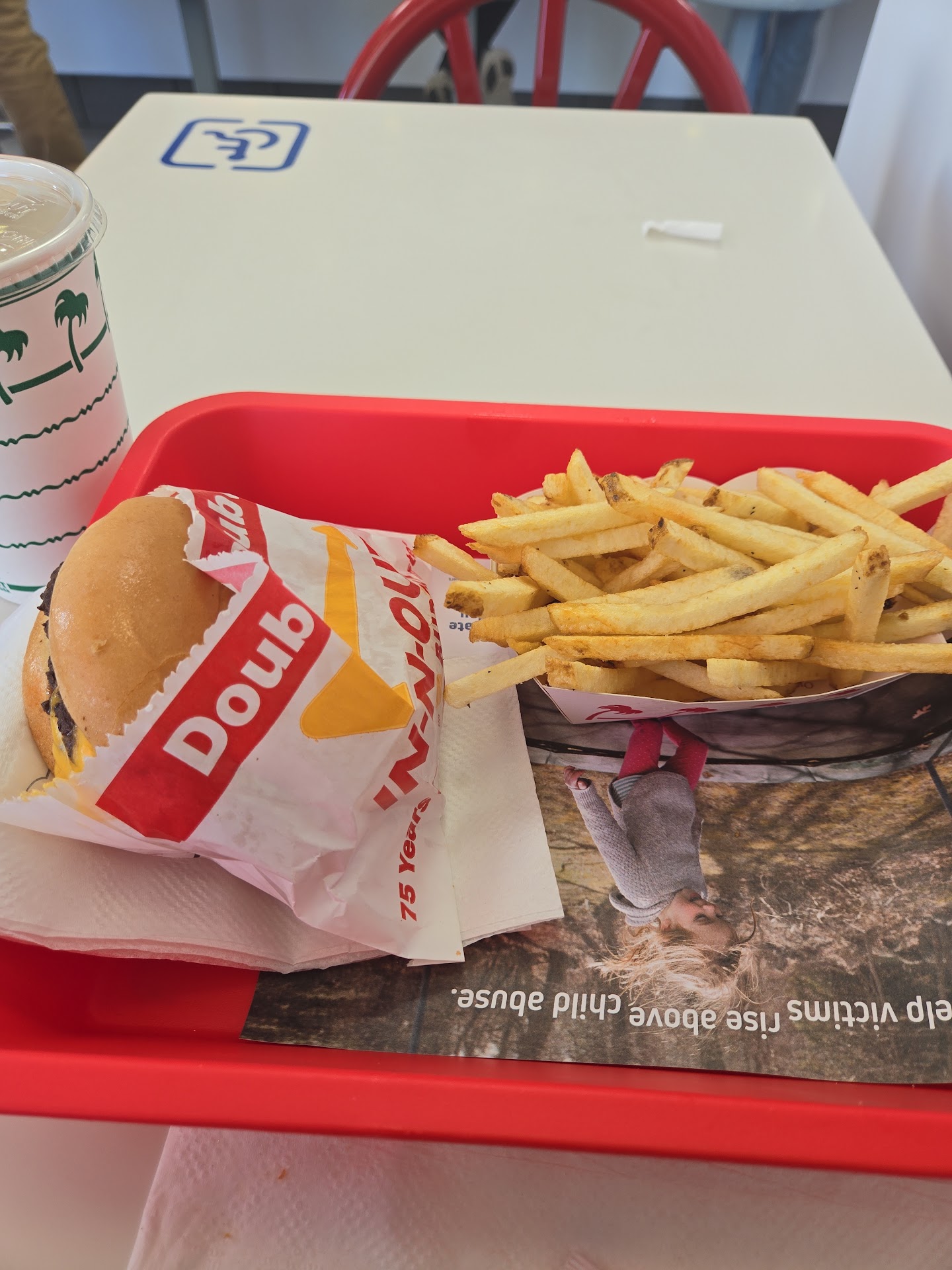 This place is always amazing. In and out has the best burgers and fries. At this particular one, there is a cashier named jordyn...Jordyn.... she is from England and simply made my afternoon. She smiled, had the best manners, and was keen on customer service. People like Jordyn underscore the need for higher paying fast food positions. In fact if people put the effort into the their job like Jordyn, I would bet my next paycheck that the industry would grow 10% in a year. The restaurant was clean and more than that, team members were all extremely responsive to every need of every customer. I even witnessed one worker help an elderly customer who spoke little English. He spoke Spanish and intervened when the other cashier was having a difficult time. It was simple, smiles, customer service ice, good food, and...