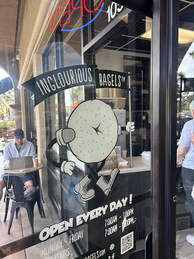 Read moreI tried Inglourious Bagels for the first time today. I ordered 4 bagels (muenster, jalapeno cheddar) and 2 bialys , along with Sun Dried Tomato, and Lox cream cheese schmears. The bagels were all dough, bland taste, and not even close to being " New York style" bagels. The Bialys were as plain, and otherwise non-descript except for the unusual heavy and overwhelming dose of onion and poppyseed loosely lying on top. However, the Sun Dried Tomato cream cheese was flavorful, and was the only reason that I rated this establishment with two stars. The Lox cream cheese was lacking in flavor, with no appreciable evidence of the presence of any lox whatsoever. This was particularly disappointing especially because the schmear cost $9.95 (likely due to the high cost of the lox) as opposed to the $5.95 for the other schmears offered. While this area of southern California offers few acceptable alternatives to this establishment, even Bruegger's is...
