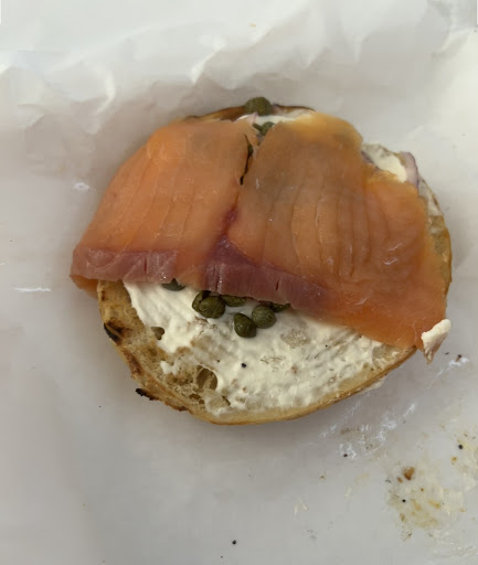 Our meal was delicious, my friend and I got the sesame bagels - hers with just cream cheese and mine with cream cheese, eggs and bacon. The bagels are huge, light and fluffy. The ingredients were great(the bacon was amazing, thick and perfectly cooked) with well prepared eggs. Some of the best cream cheese you will find.