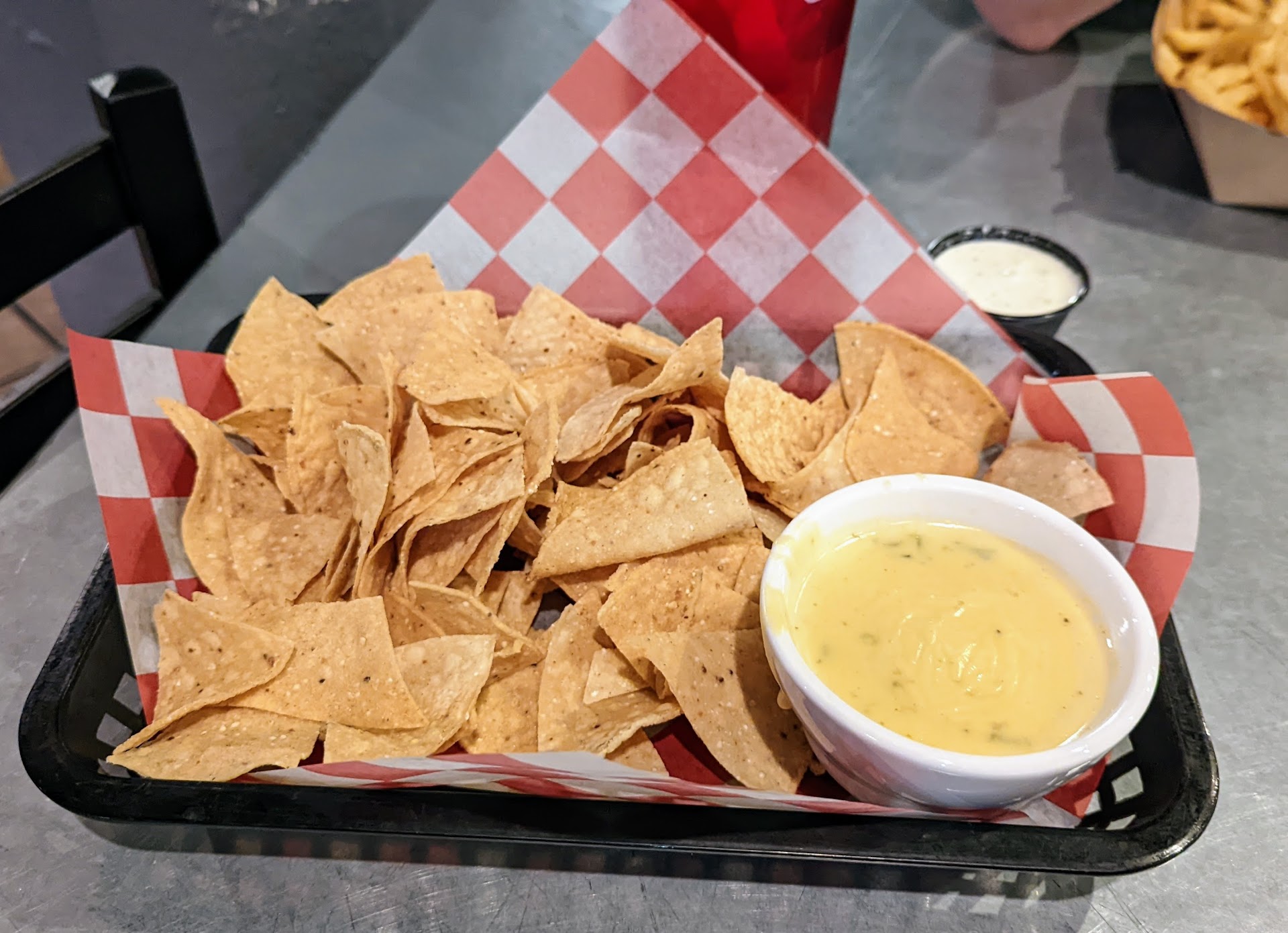 The exterior and interior dƩcor is an mix of industrial metals meets stucco and subdued Southwest brick/wood. The front entranceway houses a staircase and restrooms, and there wasn't anyone to great us when we walked in. The second room has the hostess stand, and we weren't immediately noticed, but we managed to get a table fairly quickly. Even during the lunch rush hours, the place was maybe 30% full at most. We were seated at a family table on the elevated section of the restaraunt, and the lower portion housed a bar and a few smaller tables. The elevated section had a giant mirror that somehow felt out of place among the pictures of rodeo clowns and small TVs.