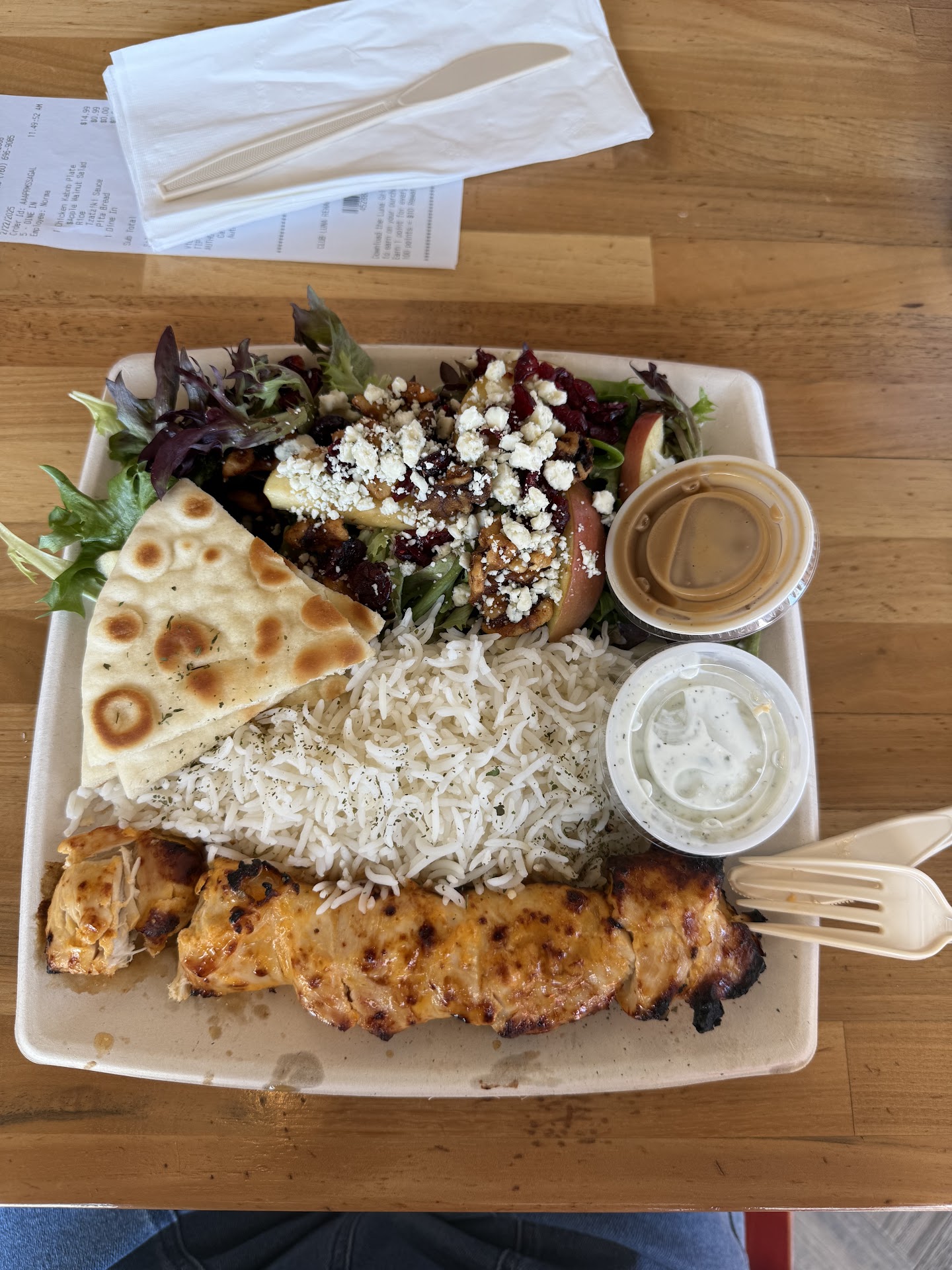 Today I went in for lunch and ordered the modern Greek salad. It was noon and I had not had anything to eat yet and I was starving! I asked the person taking my order if I could have both gyro & chicken on my salad. I was told yes and I requested to have the chicken kabob as opposed to whatever chicken they now put on the salad. I was a lil shocked when total came to $33 but I didnt look at the receipt right away because LG is a bit pricy and inflation. When the food was delivered to my table, the chicken was on the salad along with a side plate of gyro. As I was eating, I got out my receipt to scan for points when I noticed I was charged $10.99 for salad, $7.49 to add chicken and $9.99 for a La cart gyro. Looking at the menu it says $3.79 to add chicken or gyro to salad. When I was finished I took my receipt to the counter and told a woman who appeared to be the manager that I was over charged. She looked at my receipt and explained the cost difference for the chicken kabob, which I understood however I didn’t order a plate of gyro, I wanted it as addition to salad. She then explained to me that the portion of gyro was much smaller on the salad than what they gave me. Again, I understood but this is not what I ordered. The person taking the order should have charged me $3.79 for addition of gyro then $7.49 for the chicken kabob. She agreed with me and said she would speak to the employee for future reference. I was not offered a refund for the difference nor much else. I walked out a bit annoyed and frustrated. I like Luna Grill a lot however this experience left a bad taste in my mouth and I don’t expect to return...