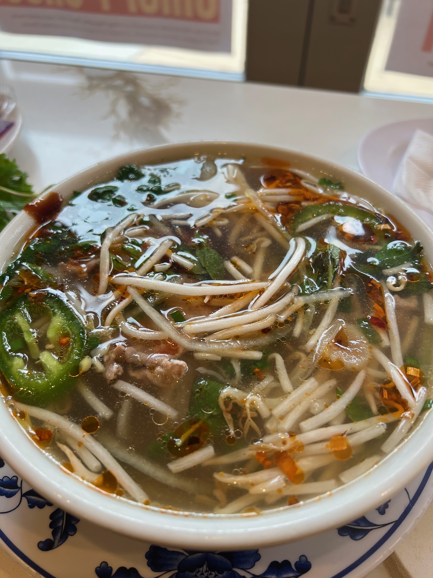 The star of the show was, of course, the pho. The broth was absolutely perfect—rich, flavorful, and clearly made with love and care. It had the kind of depth that comes from hours of slow simmering, with just the right balance of spices. The noodles were cooked to perfection, and the generous portion of fresh herbs, bean sprouts, lime, and jalapeños elevated the dish even further.