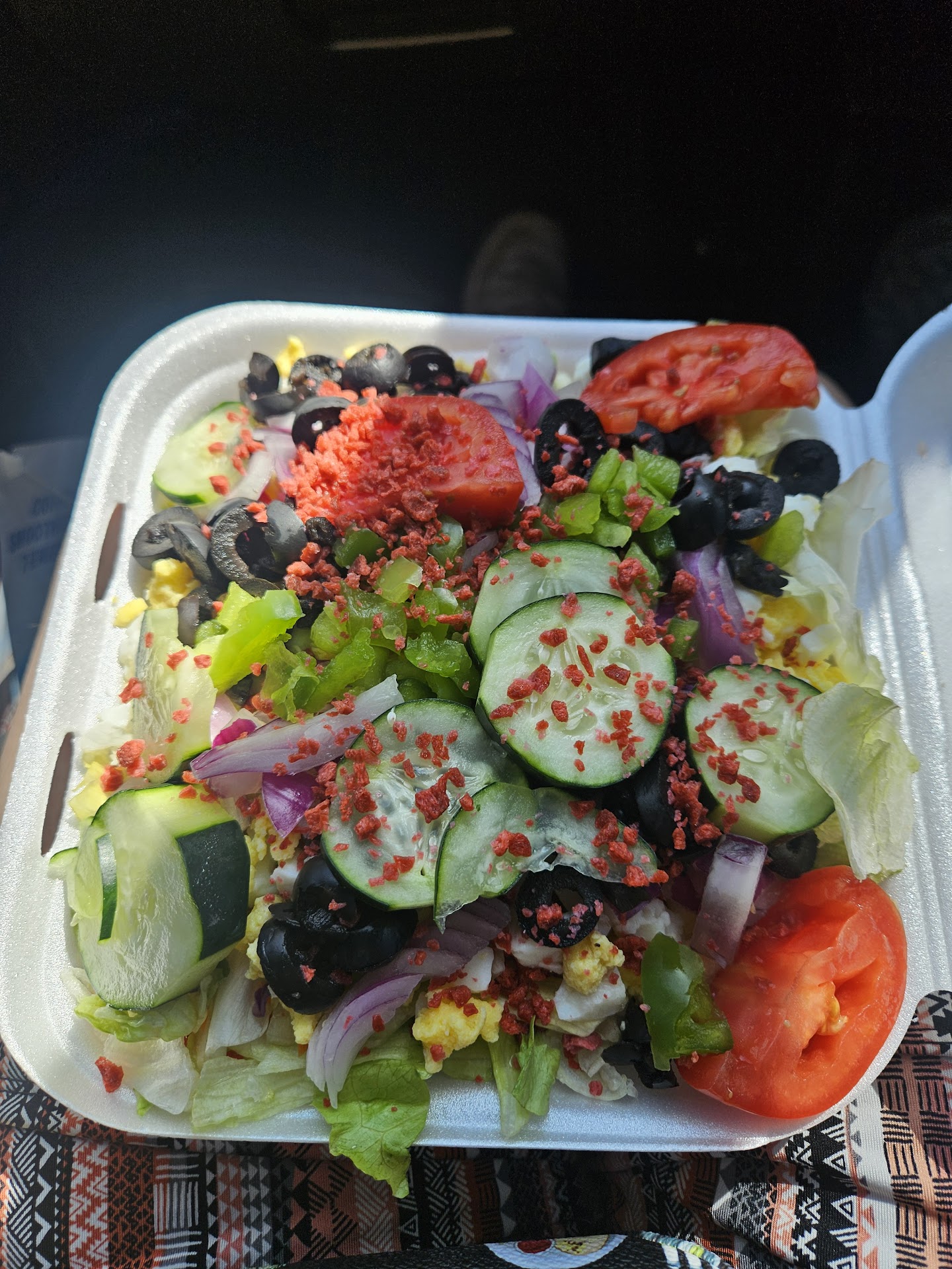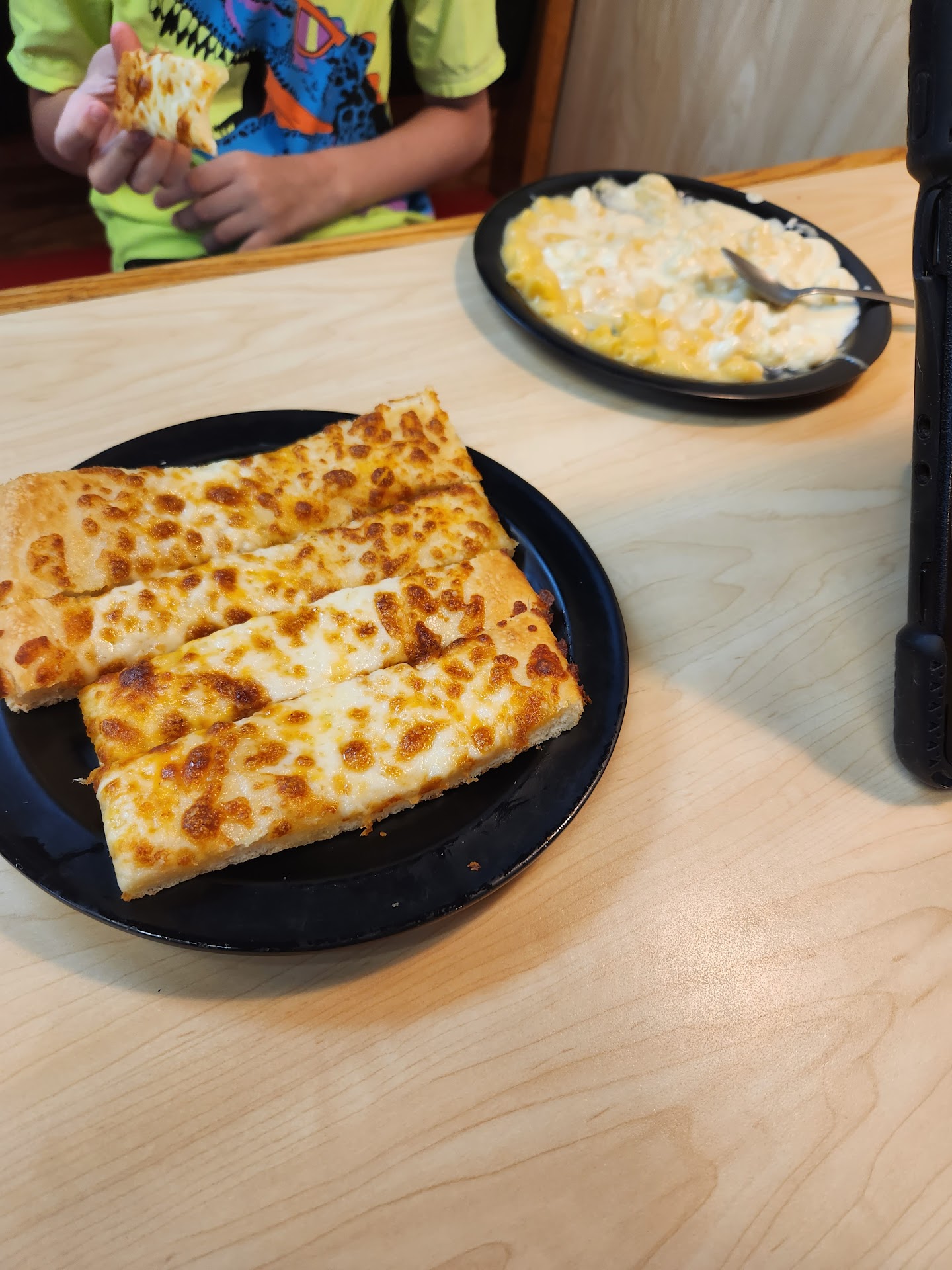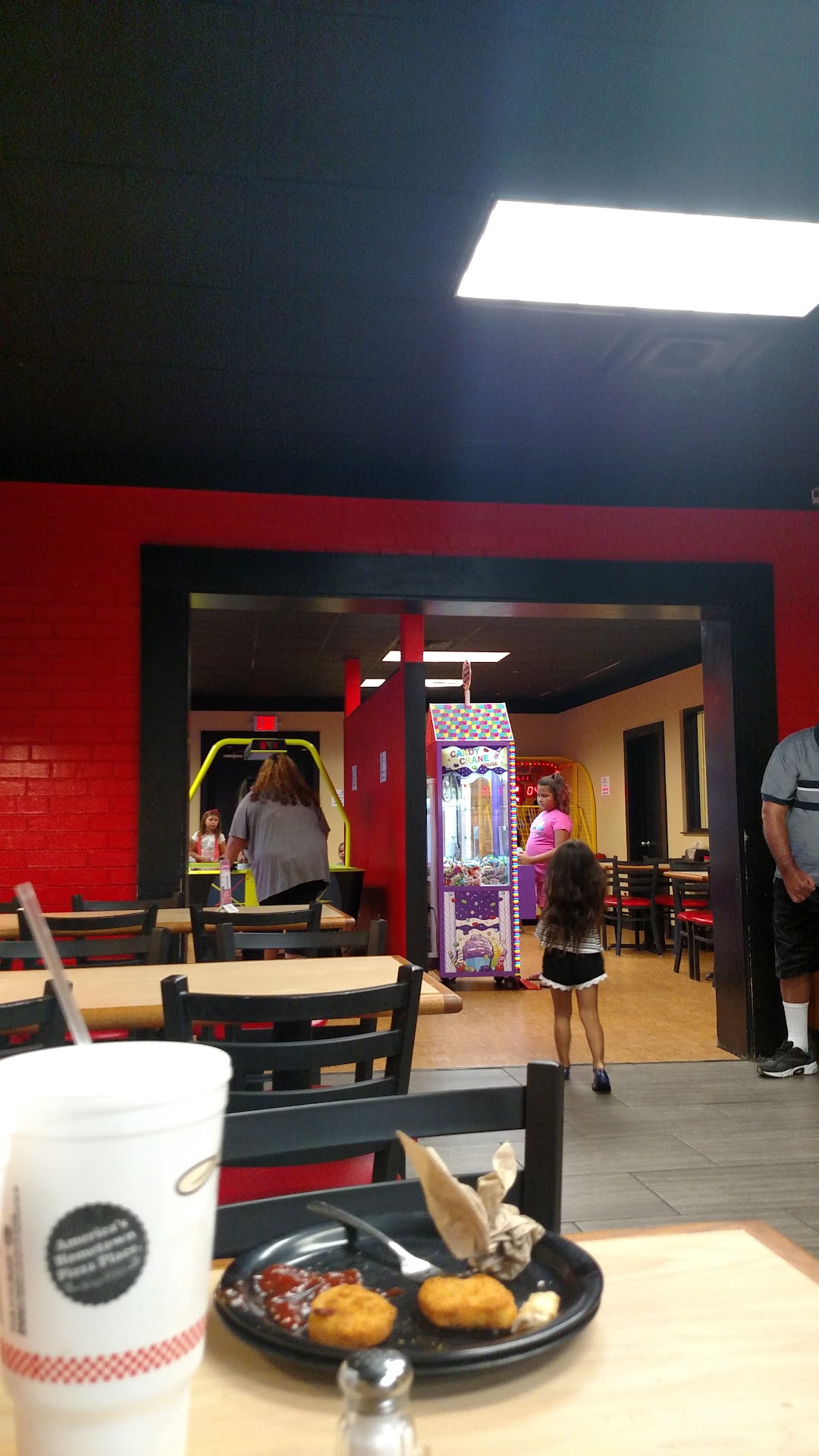 The salad bar is very popular, the sides are always stocked with ranch, sunflower seeds, bacon bits, and croutons ect. The ranch is delicious! There's also a small section for chicken nuggets, white Alfredo pasta, Mac & cheese, and spaghetti. The atmosphere is occasionally quiet but can get loud due to when customerss have parties towards the very back where the arcade/play area is.