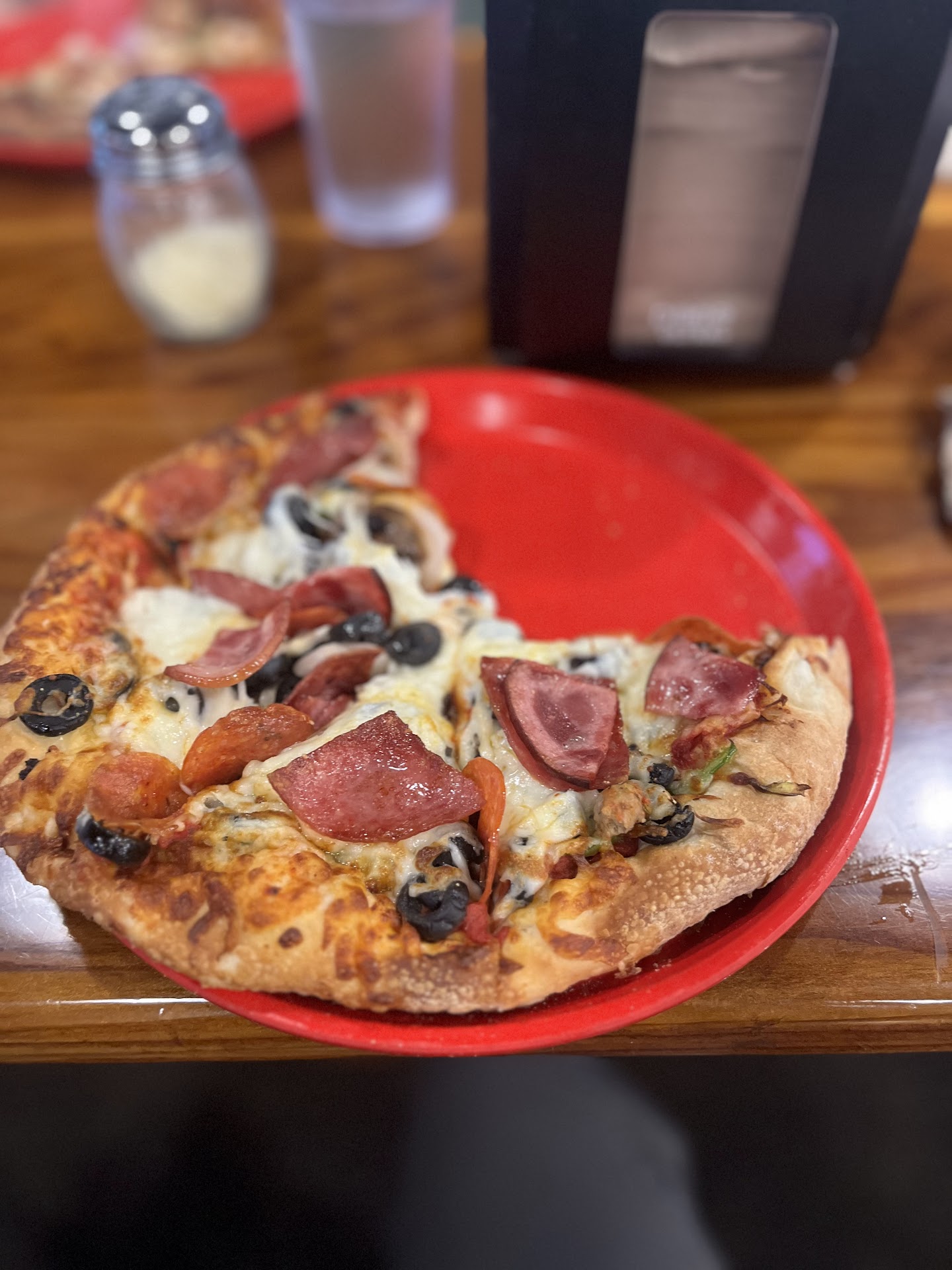 Read moreThis place is nothing short of a culinary utopia paired with a spirited, cheerful ambiance, offering a fabulous mix of delectable pizza and succulent wings, probably the best ones in town! It’s a great family spot, loud and lively, with game machines that the kids absolutely love, providing a wholesome experience for the entire family. The long picnic benches add a unique and communal touch, fostering a sense of unity and shared enjoyment, even amidst a bustling crowd.
