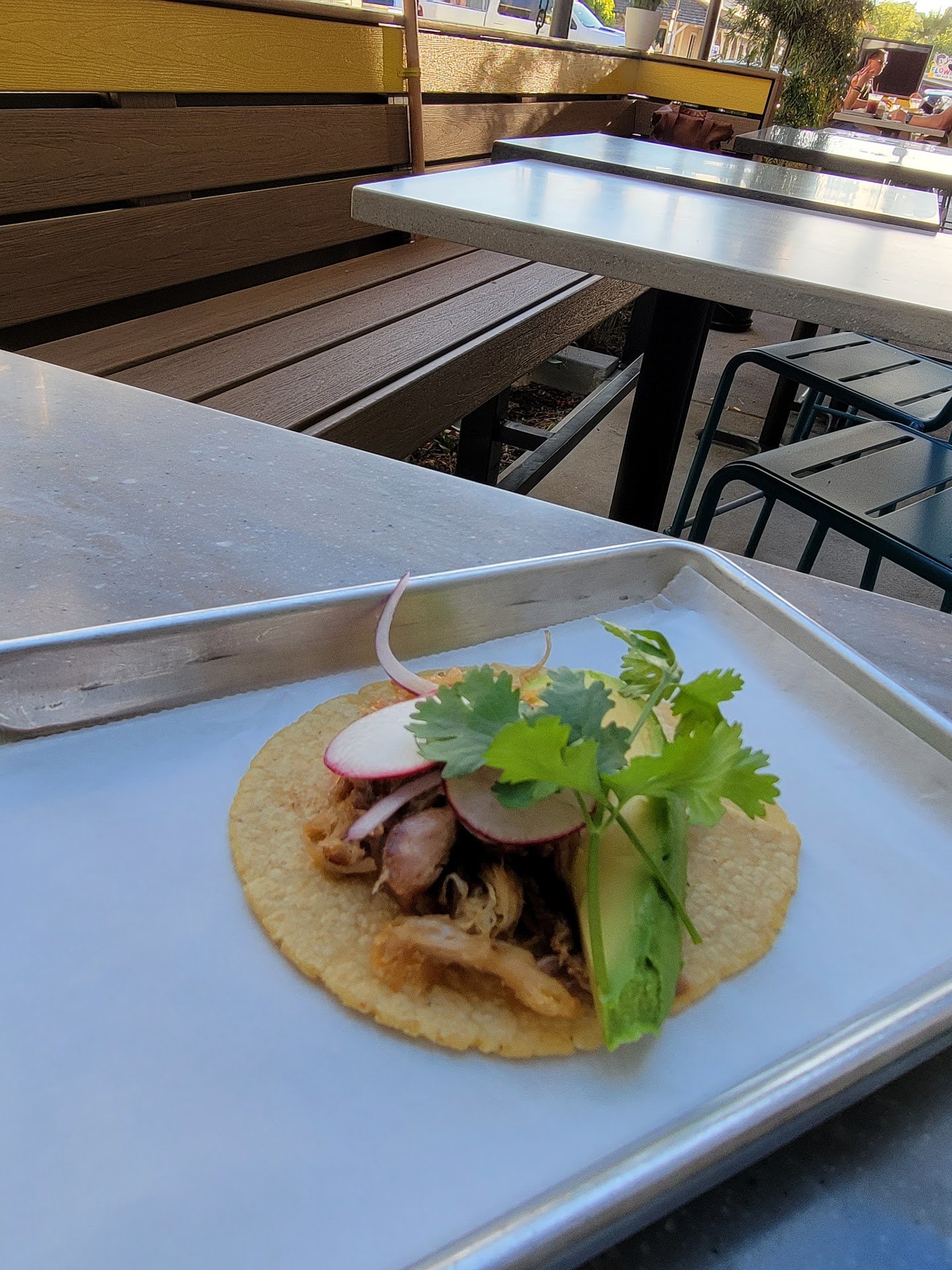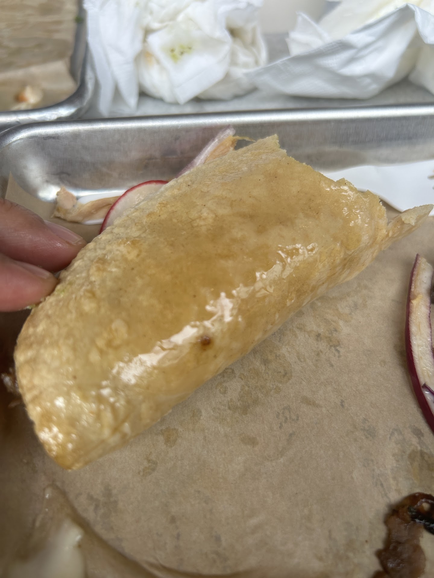 They put slaw on mostly every taco. Please stop doing this. Lol it’s ruining the taco. Just keep it simple with known ingredients. The brisket taco had BBQ sauce AND slaw on it with crema. 100% ruined the taco. We only ate half of it and trashed the rest. The tortillas were really good, except they were drenched in oil :( see pics attached. The flour tortillas were good and homemade which is a plus! We also ordered the avocado fries. $10 for 6 small pieces of fried avocado. It’s less than half an avocado in pieces which is such a rip off.. Not worth it.