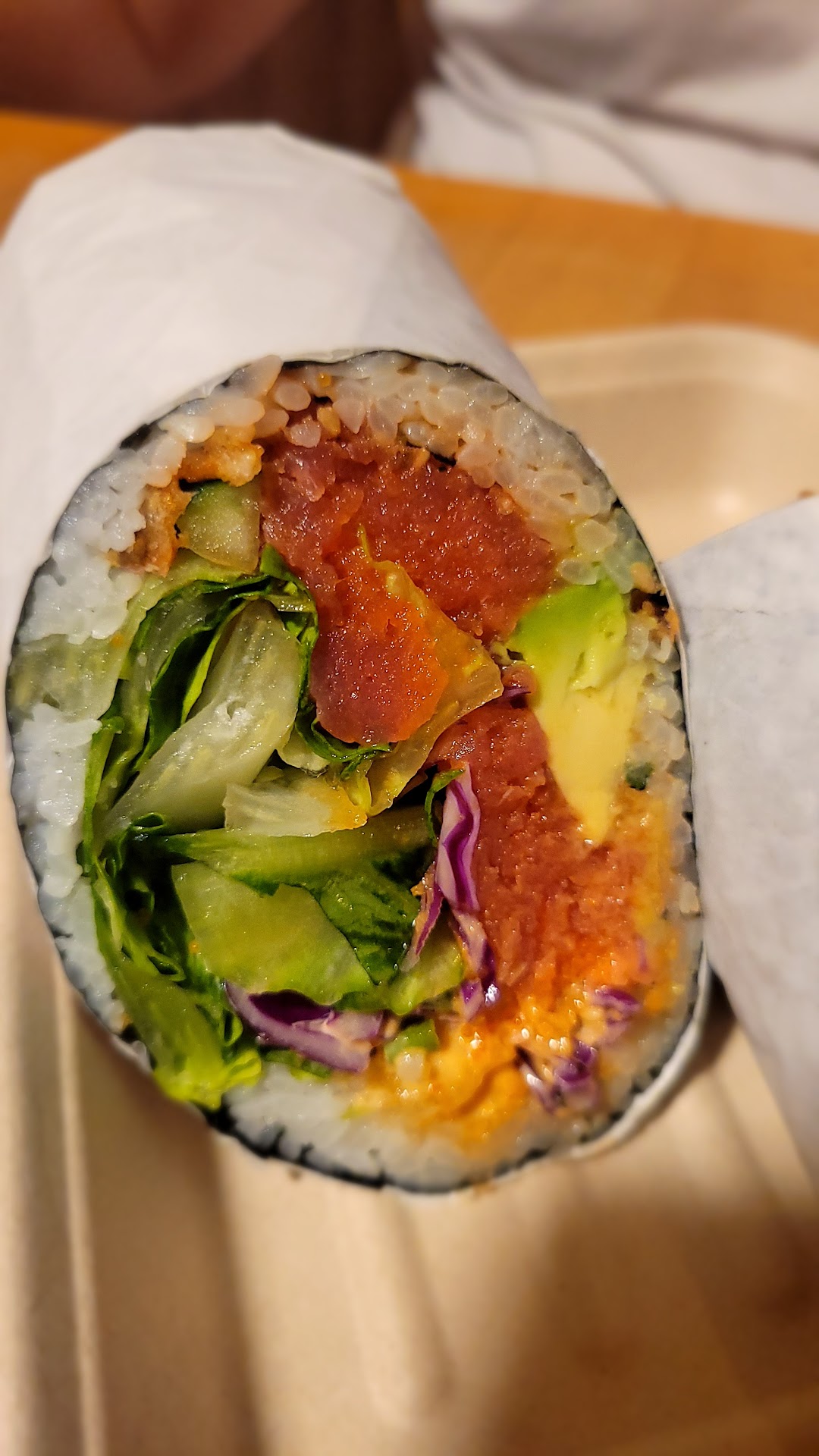 I had a great experience here in early March 2025. I was able to order my food with a person at the counter who was polite and attentive. The food didn’t take too long to prepare, and it was very good. I had “The Works” burrito and it was delicious. My son had a spam musubi and he seemed to really enjoy it. My only gripe about this place is that I think it’s a bit overpriced. The taste was excellent but there just wasn’t a large quantity of sashimi in the burrito to justify $21. By comparison, I frequently visit a poke restaurant and pay roughly the same, but usually am giving 2-3x more fish. Also, the spam musubi that my son ordered was enough for him, but at $5 is extremely expensive to the typical $3 or so that I’m used to paying for a larger one at Hawaiian restaurants Anyway, the food tasted good and the people who work there seem nice so I’d still come back...