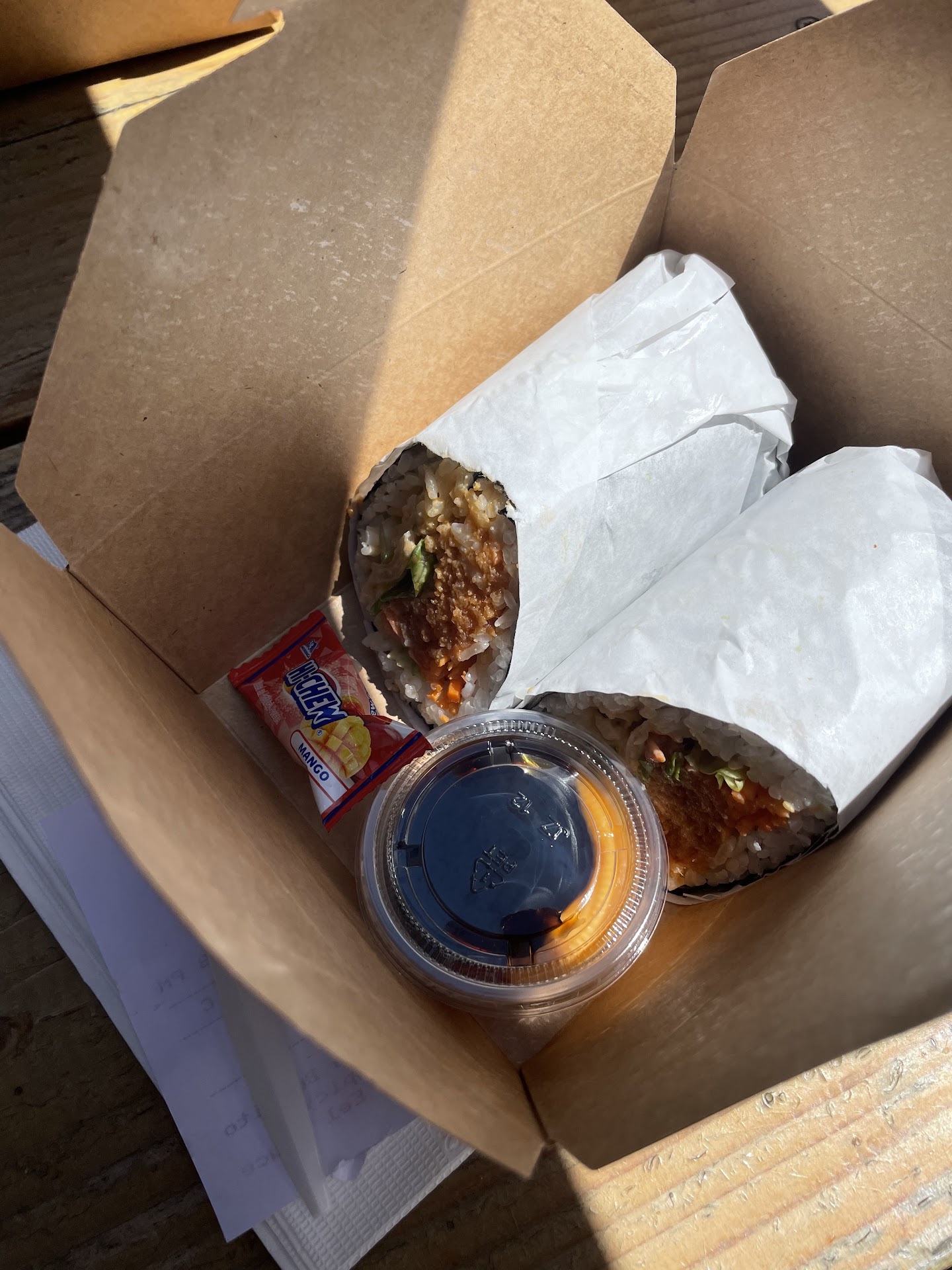 Read moreKiosk/QR ordering only. People working there avoid customers at all costs. Took me 35 minutes to get 2 sushi burritos and a spam musubi. I stood there for the last 15 min and saw NO food come out. Meanwhile they sure keep taking peoples $$ at the kiosk. Maybe they just all decided to take a break? Idk I only saw 2 ppl working in there. Then the order before mine finally came out. Then the order after mine (sushi burrito). Then I asked about my order. Then the order 2 after mine came out (sushi burrito). My group ordered, received & consumed tacos, lobster roll and a burger while I waited. Sadly the poke burrito and shrimp tempura burrito...