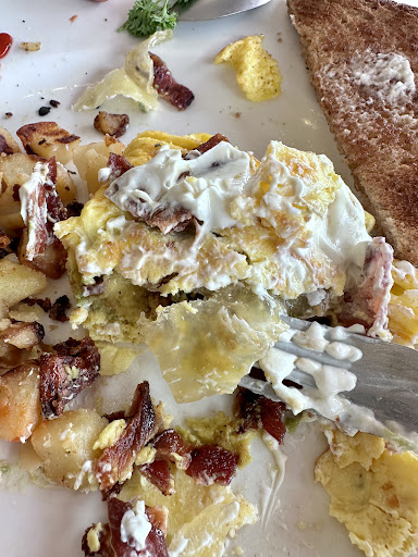 For breakfast, you can find items like eggs Benedict, omelettes, avocado toast, breakfast burritos, biscuits & gravy, chicken fried steak, waffles, pancakes, French toast, and of course, a typical American breakfast with eggs and bacon.