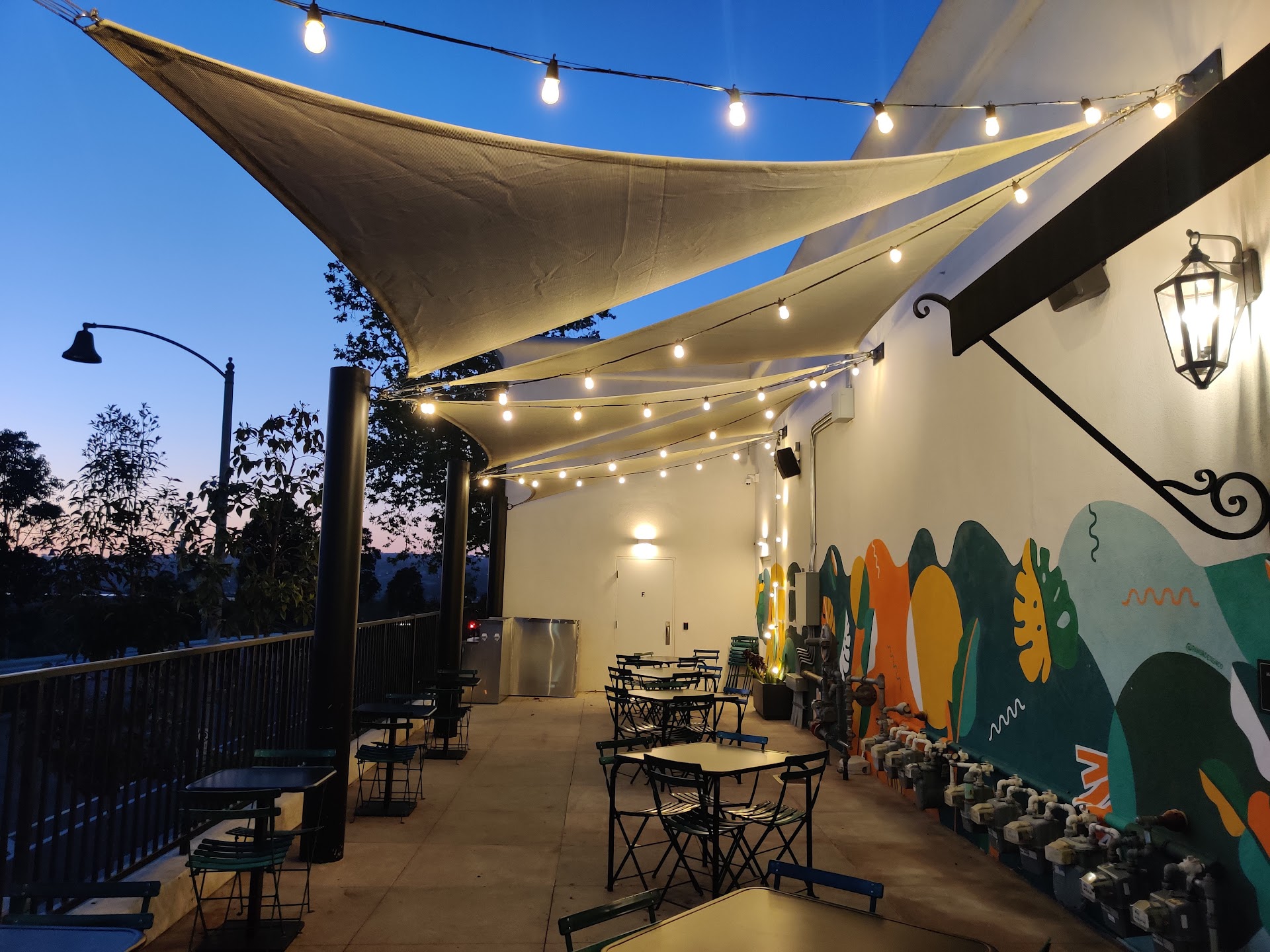 Nestled in a quiet mountain area, the restaurant features a spacious balcony, perfect for soaking up the sunshine by day or enjoying the charming night lights after dusk. The space is styled with white walls, vintage-style lanterns, and a clean, modern upscale aestheticāsimple yet elegant.