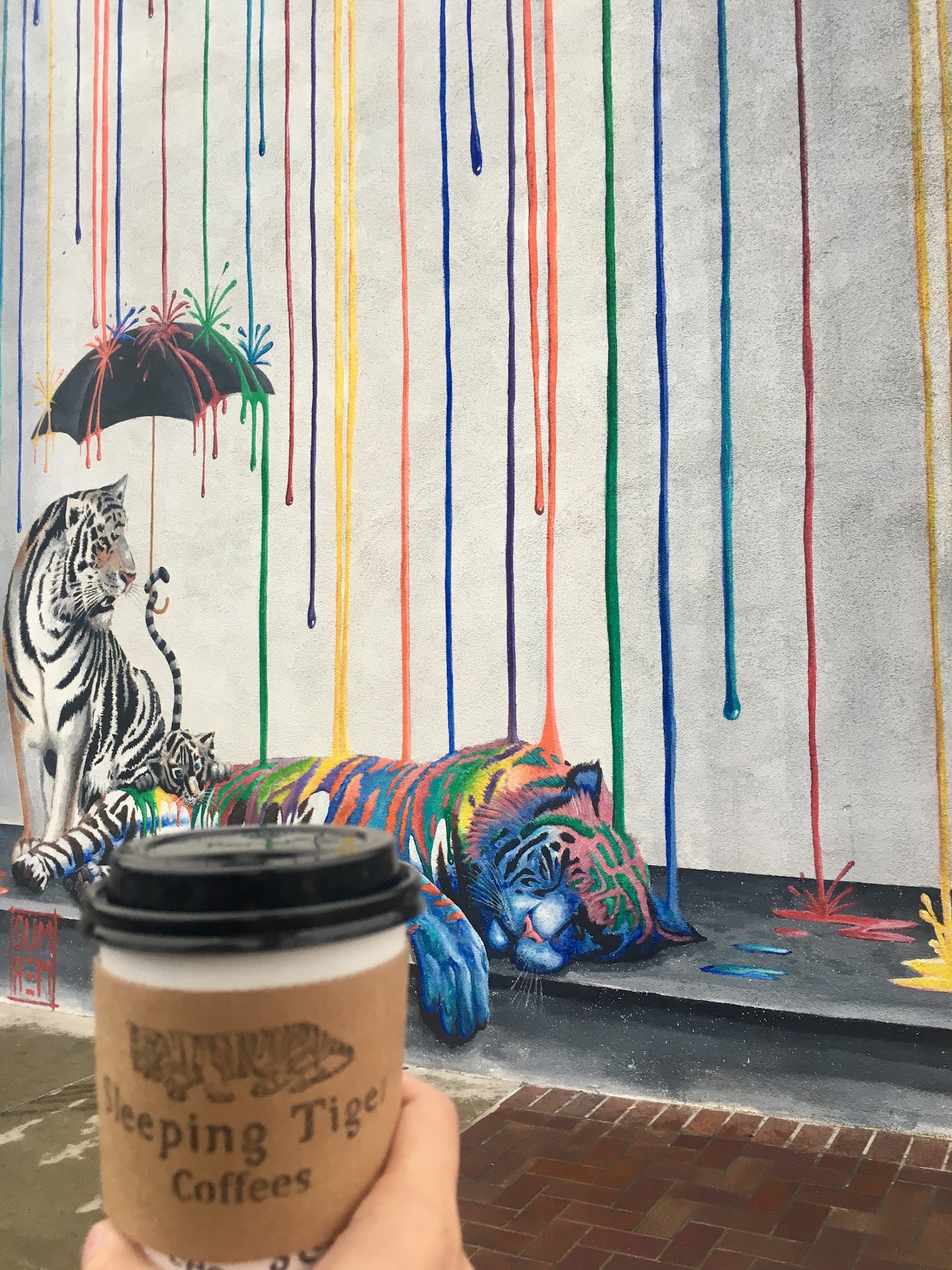 Read moreWon’t come to Carlsbad without stopping here! I’ve had this place saved on my map for the longest and i finally got to try it out. I had a coffee called Misty Valley and it was honestly one of they best cups of coffee I’ve ever had. The beans had a vanilla blueberry taste that you were definitely able to smell and taste. Once you walk inside you’re able to notice that the place is split into two. On The right side they sold coffee and on the left they sold wine so everyone inside were drinking different things which was interesting. Outside they have this beautiful painting of sleeping tigers. Several people were stopping by to get a picture. The staff actually gave me several drink recommendations that i can’t wait to come...