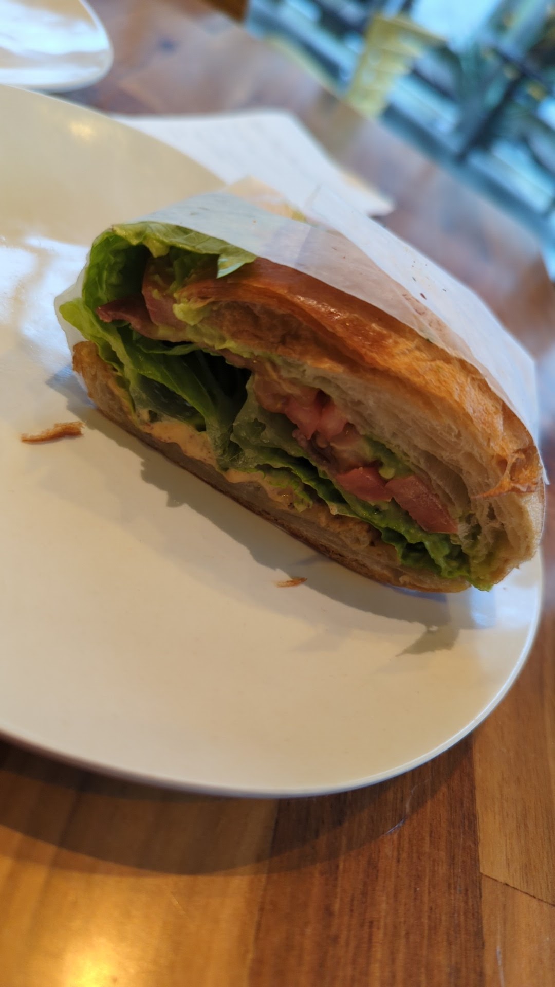 Stopped in since I was in Carlsbad and had friends suggest that Veggie Grill has a good vegan menu. I was able to step right up and order – no waiting. Got my number and cup for water and sat down to wait. Since the store wasn’t busy, I expected pretty quick service – but ended up waiting a little more than 20 minutes for my sandwich and soup.
