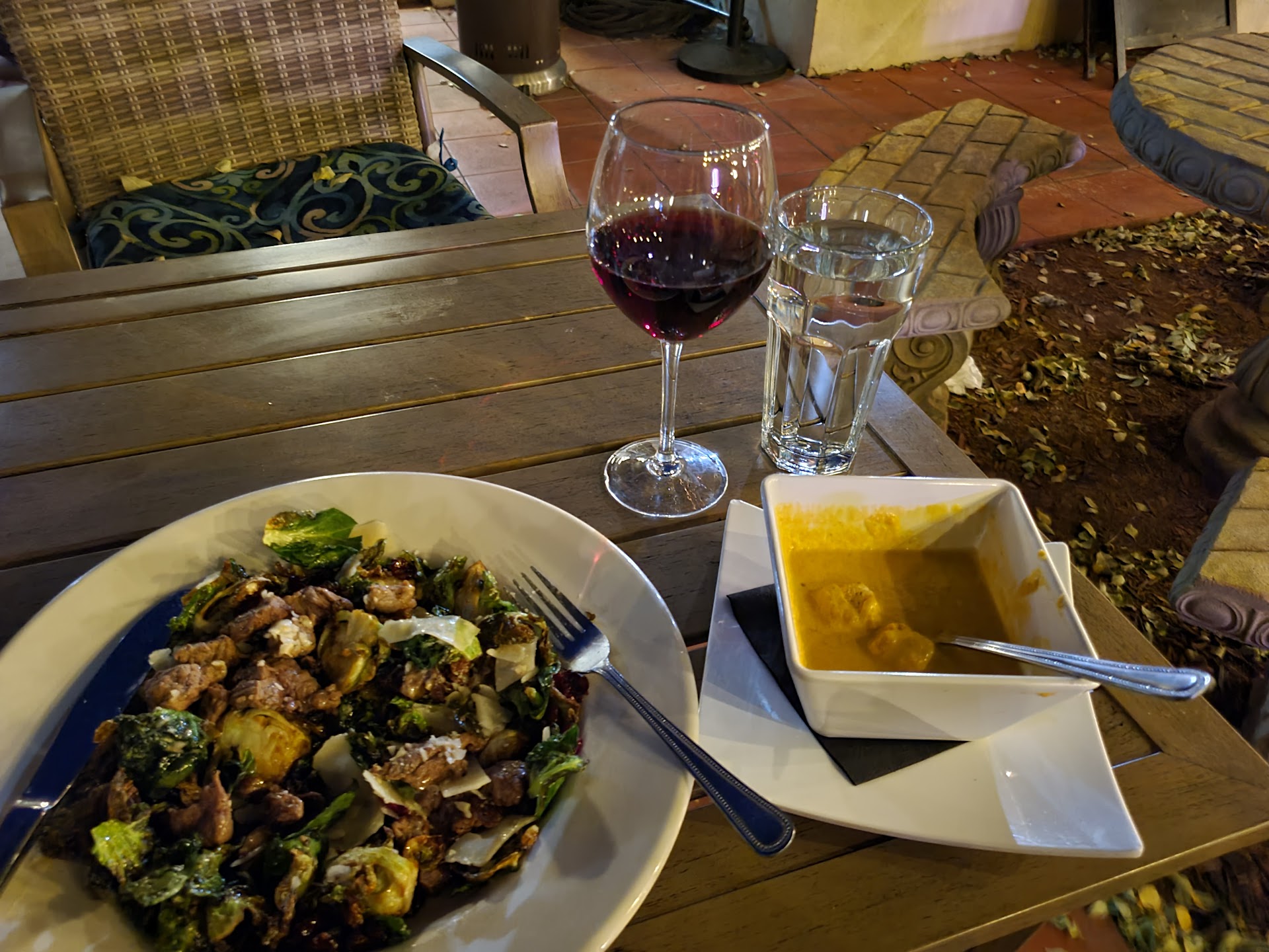 Called ahead to inquire about the patio. If it was open or not and asked of it was pet friendly. They said yes absolutely! They had a couple servers out there taking care if people. Upon being seated both my date and I both asked for some water to start with and asked for a drink menu and placed our appetizer order(calamari discussed above). The little server girl, kaylee, I think her name was, or something similar, came back with no waters, no drink menus, and had two offerings that she just tried to memorize on her way to the table. So I asked if they had any beer on draft or if it was all in the bottle. She said that they had beer on draft but did not know what kinds. So I went the safe route and just had a Bud light. So we wait about 30 minutes and here comes our appetizer. Before the drinks before any water and was just set on the table and walked away. So we have our appetizer. Nothing to drink. No silverware, no side plates. Just a pile of breaded carrots and a couple pieces of the calamari. Almost done with the appetizer (still no silverware or napkins!) Finally.... Something to drink! Asked again for some water though. By this time, it was starting to get a little chilly outside, noticing the nice propane warmers that they offer, we inquired about turning one on. The little server bee bops inside and returns with what I assume to be a manager type person. He unlocks the cage holding the propane tanks, pulls one out, sets it down, grumbles that he doesn't have time for this, and briskly walks away. So I went over grabbed the propane tank and hooked it up myself. Lit the pilot and got the thing running. Still waiting for entrees................. Still waiting ................ Waiting some more..................... Almost 45 minutes later plus the 20 minutes of the propane issue, we finally have entrees. Chicken cordon hockey pucks and Crab cakes that taste like canned tuna fish instead of crab. Guess what? Just guess...... That's right! STILL NO SILVERWARE!!! STILL NO WATER!!! At this point, we just asked for to go boxes and the check. Worst $110 of my life!!! Is this place really one of the top places to eat...